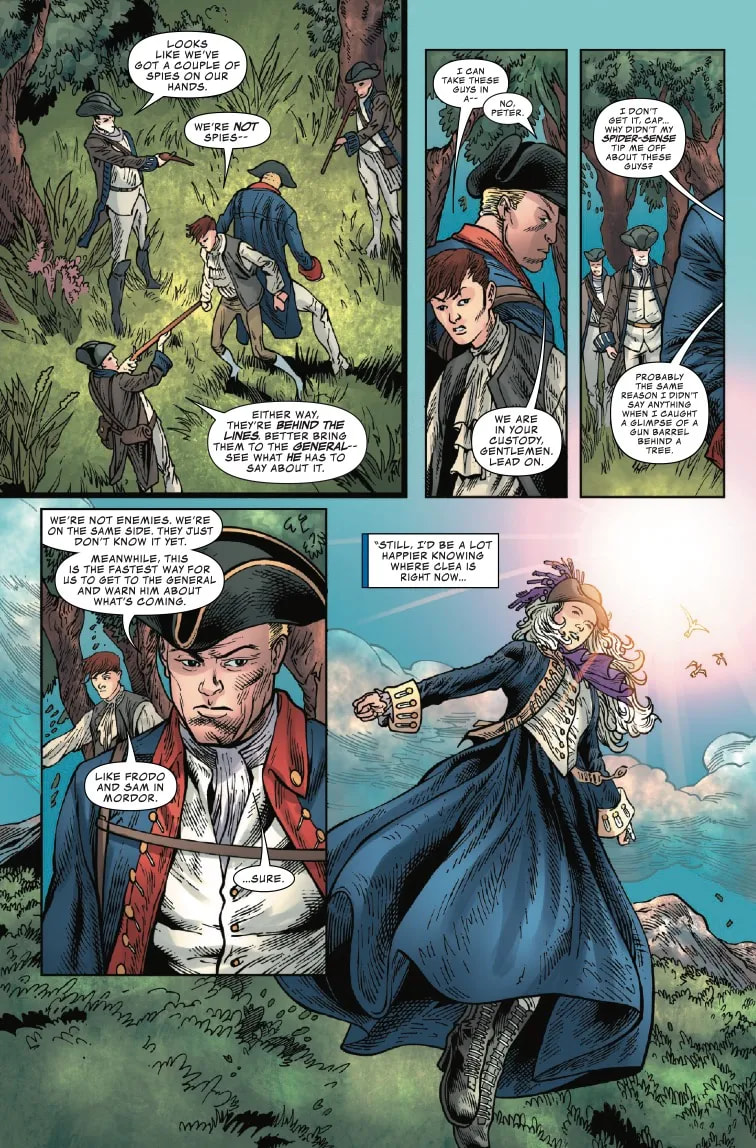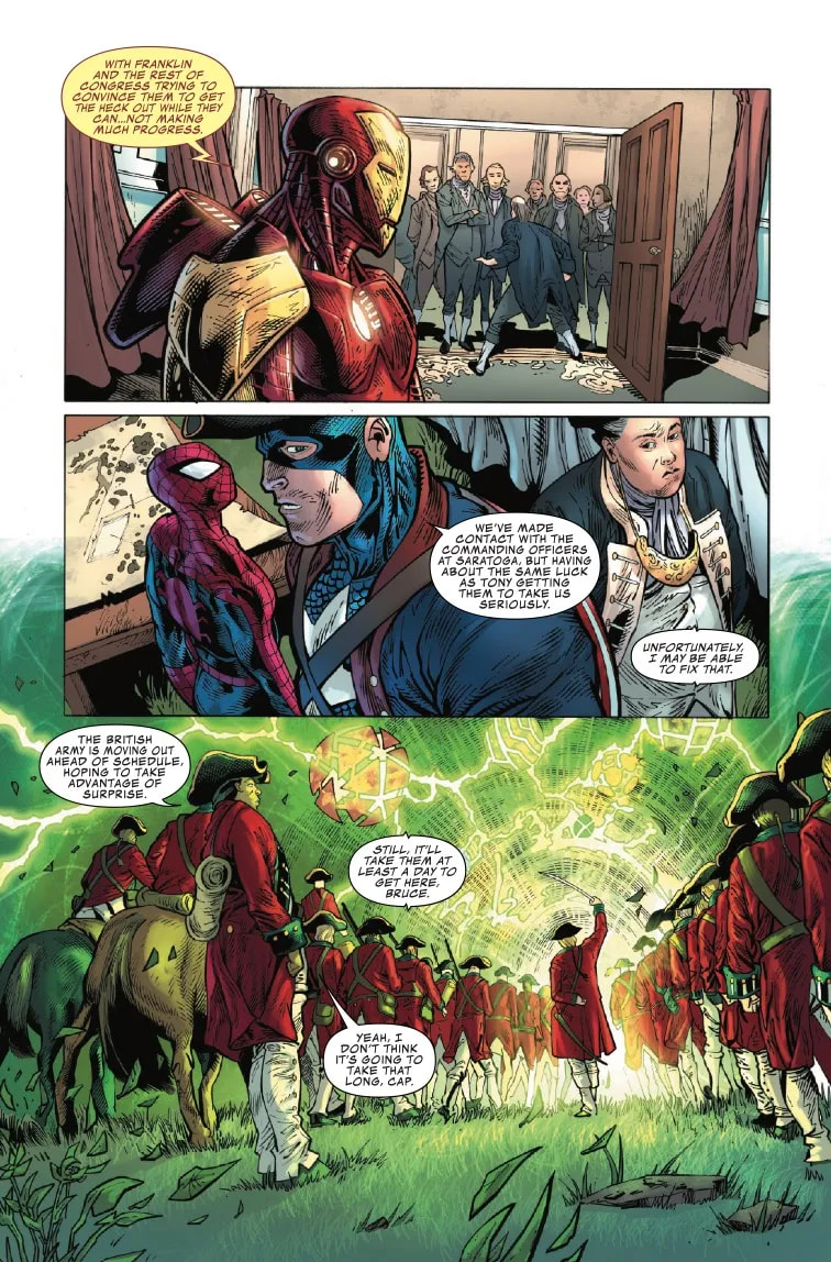 - Calamity strikes when a mysterious force dares to tamper with the sacred threads of history. CAPTAIN AMERICA and his formidable squad of Marvel heroes leap into action! Their mission? To safeguard the founding of the United States of America! The fate of the nation hangs in the balance at the dawn of the Revolution, as these valiant heroes must navigate the treacherous waters of the past to ensure a future that remains untarnished.