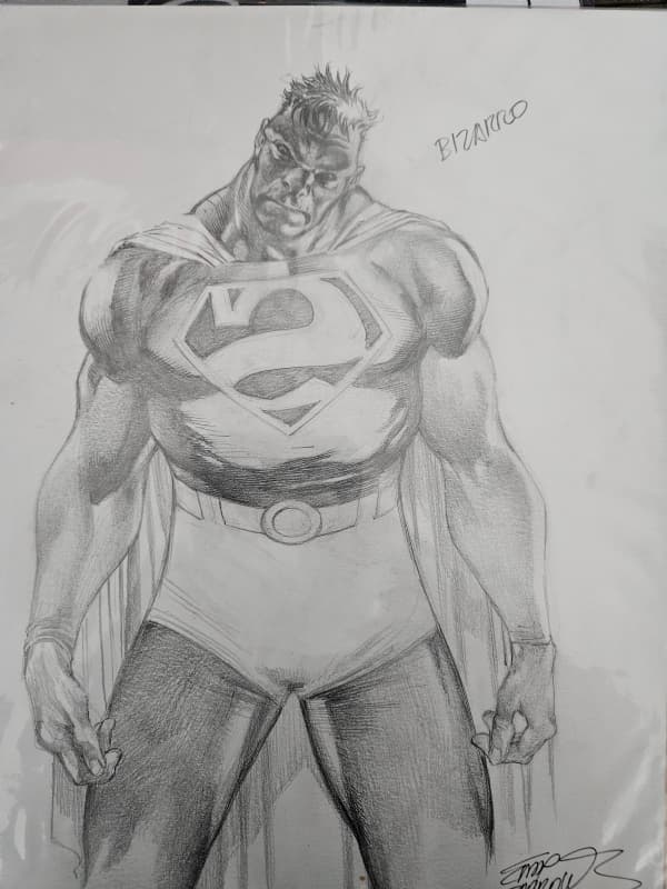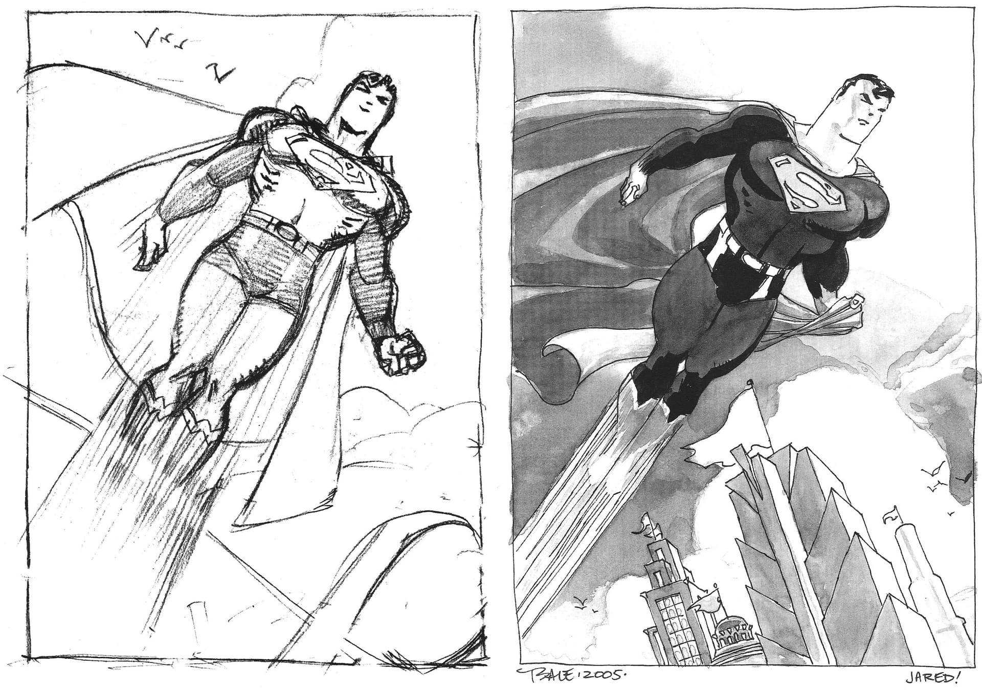 MAD wanted me to make some adjustments to this- they didn’t like Superman’s awkward looking left hand (they were right on that, it worked better in the sketch) and they wanted some changes to the background especially to create ‘atmospheric perspective’ by way of fading the contrast and colors and adding a haze to it.