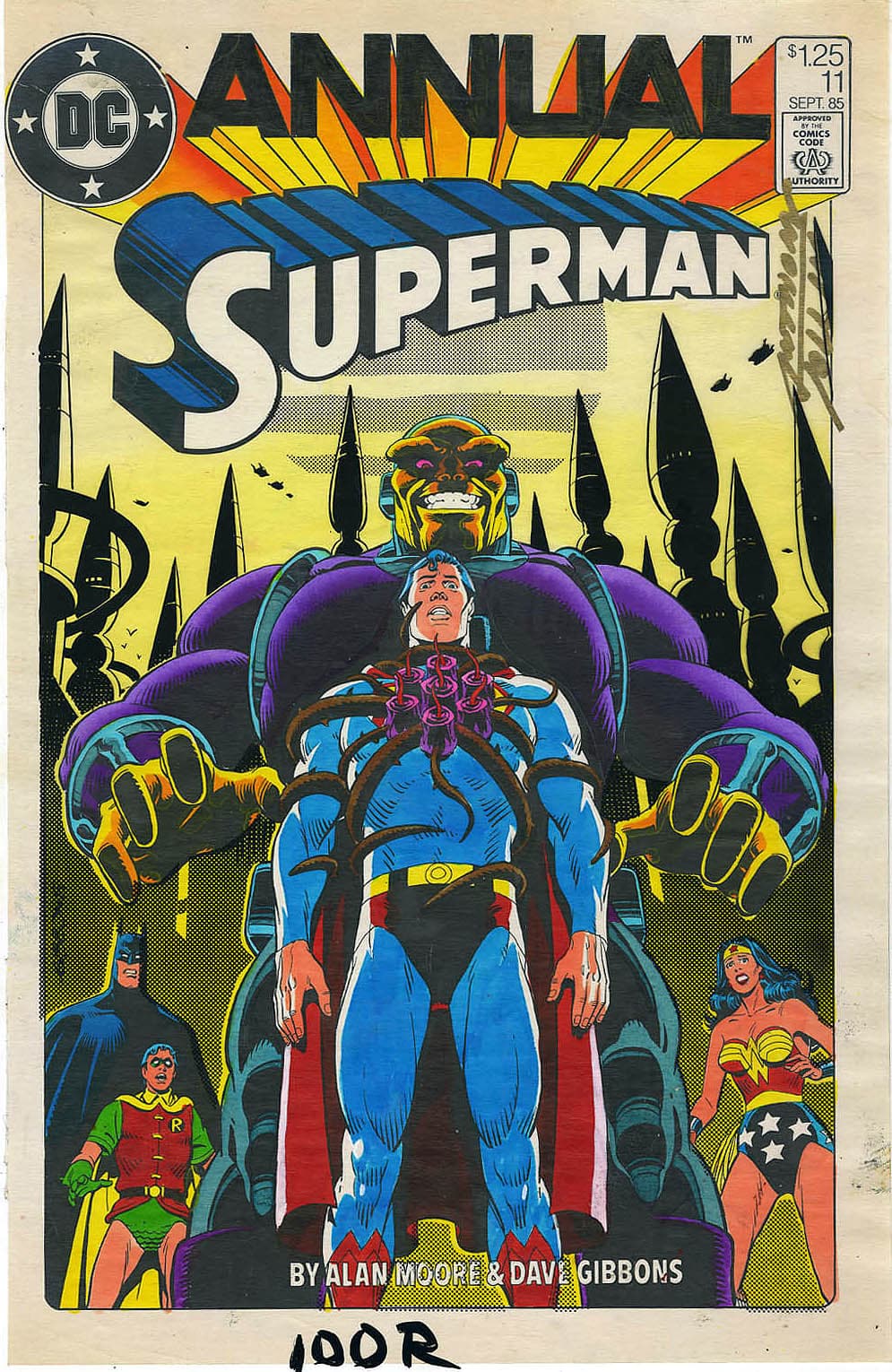 Original cover color guide by Dave Gibbons (art) and Tom Ziuko (colors) from Superman Annual #11, published by DC Comics, September 1985.