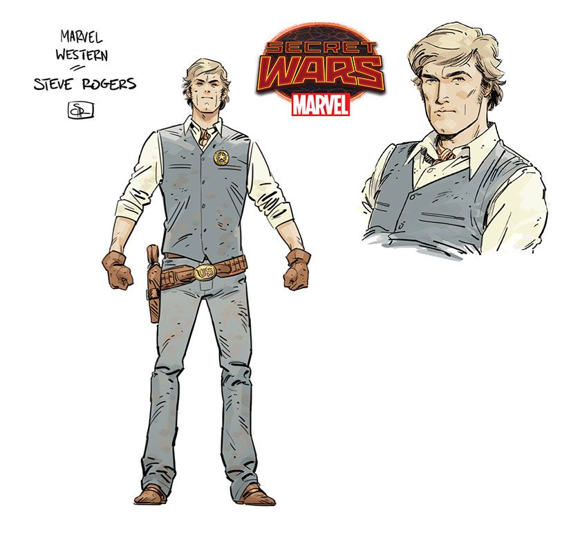 « Bryan Hitch’s work was definitely a big influence for two of the Cap suits. The « Ultimates » is a really great source of inspiration. For the red, white and blue suit, we definitely were looking at how Bryan was able to make the suit feel a bit more real, and trying a few things ourselves. I always loved treating the cowl and mask as a helmet and chinstrap, and I used that in my most early drawings. The « Ultimates » Cap was also the inspiration for using military webbing, or straps, as part of the costume. Generally, those straps are meant to hold the up the soldier’s belt that has extra ammo and gear attached. I always saw it as accomplishing that, as well as being a type of body armor, but also as part of the system that held the shield when he wore it on his back. Even if that shield is relatively lightweight, it would still need something to securely fasten it to his back. The straps that come off his chest are very similar to the ALICE webbing that was used in Vietnam. Using the straps as the stripes across his torso then seemed like an elegant design solution. In the end, the main design aspects of this suit are meant to be about making it appear soldier-like, functional and tough. This is the suit where he fully embraces his role as Captain America, so we wanted the iconic silhouette that everyone loves, but we wanted to clothe it in function and the period. »