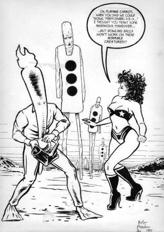 Wonder Woman rencontre Flaming Carrot, le héros de Bob Burden :