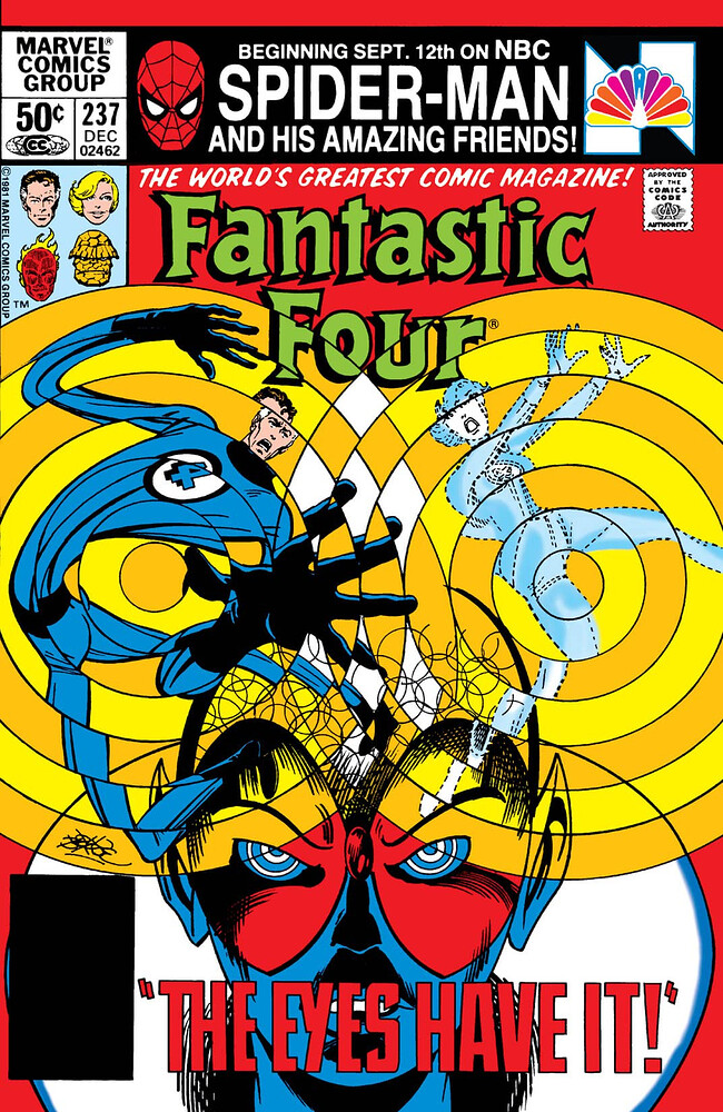 In the original printing of Fantastic Four #237, when Julie D’Angelo makes her appearance her nipples are visible through the shirt she is wearing. Subsequent reprints (including the Marvel Unlimited digital version) have removed the nipples from the panel.
