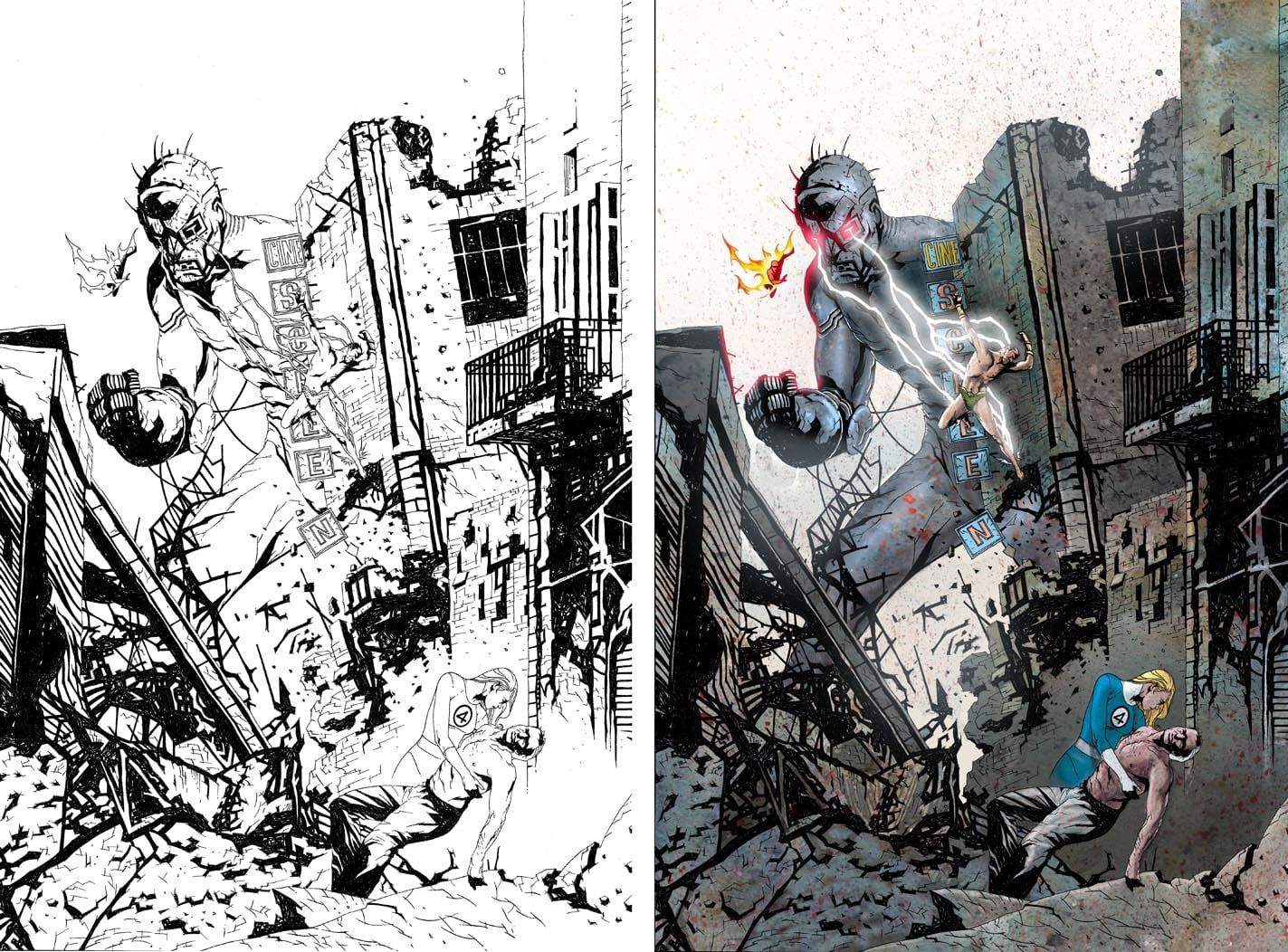 « My first Eisner nomination was for the coloring I did for Jae Lee on Grant Morrison’s Fantastic Four 1234. Here is the little seen cover for issue 4. »