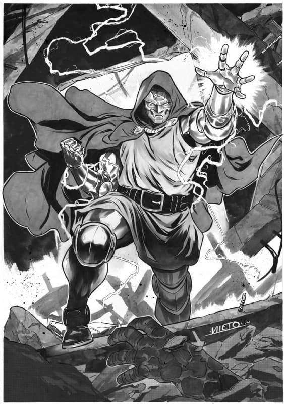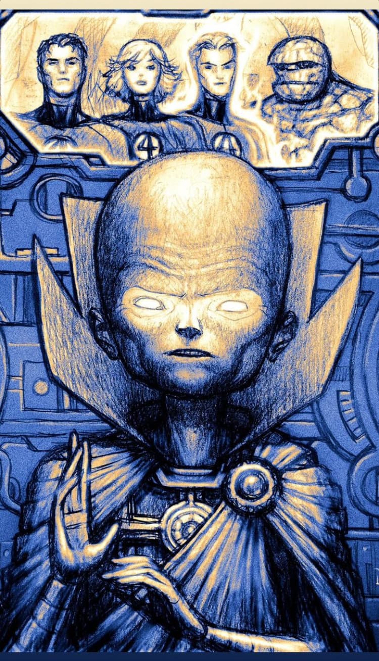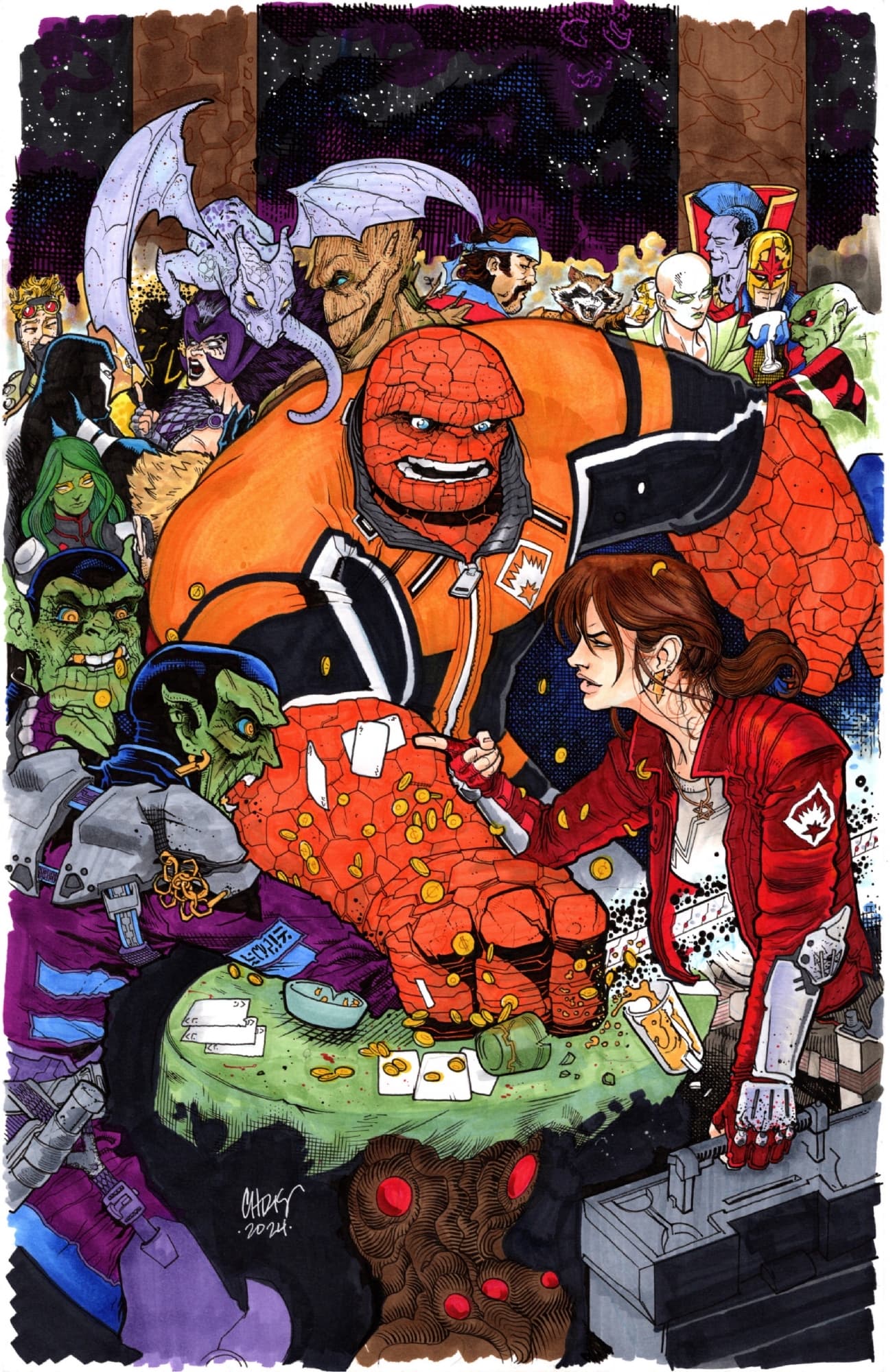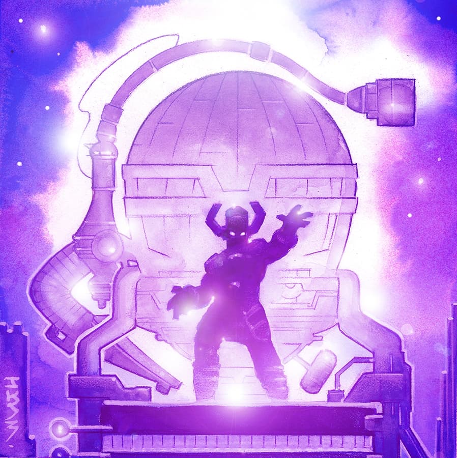 Fantastic Four Galactus/Marvel VS System Card Original Art(Upper Deck 2006). Card. Published art for Card #MHG-032 (« Elemental Converters ») of the Heralds of Galactus series. Image art area measures 6.5" X 6.5" on 7.5" X 7.5" Strathmore Illustration Board.