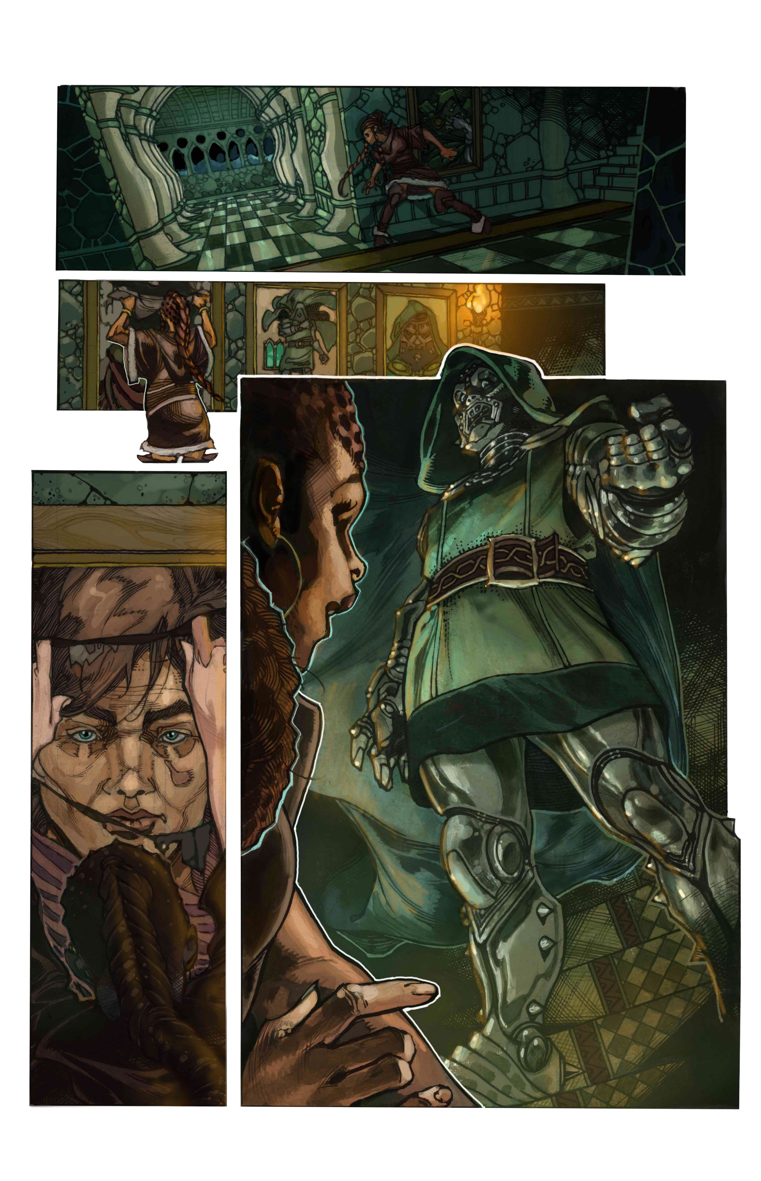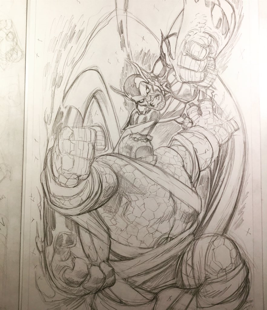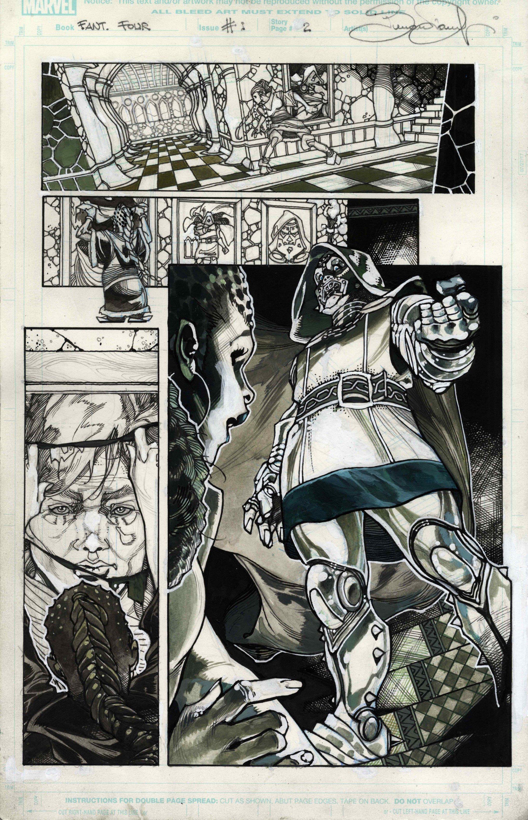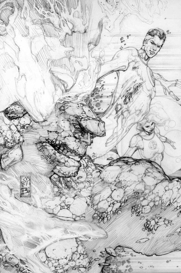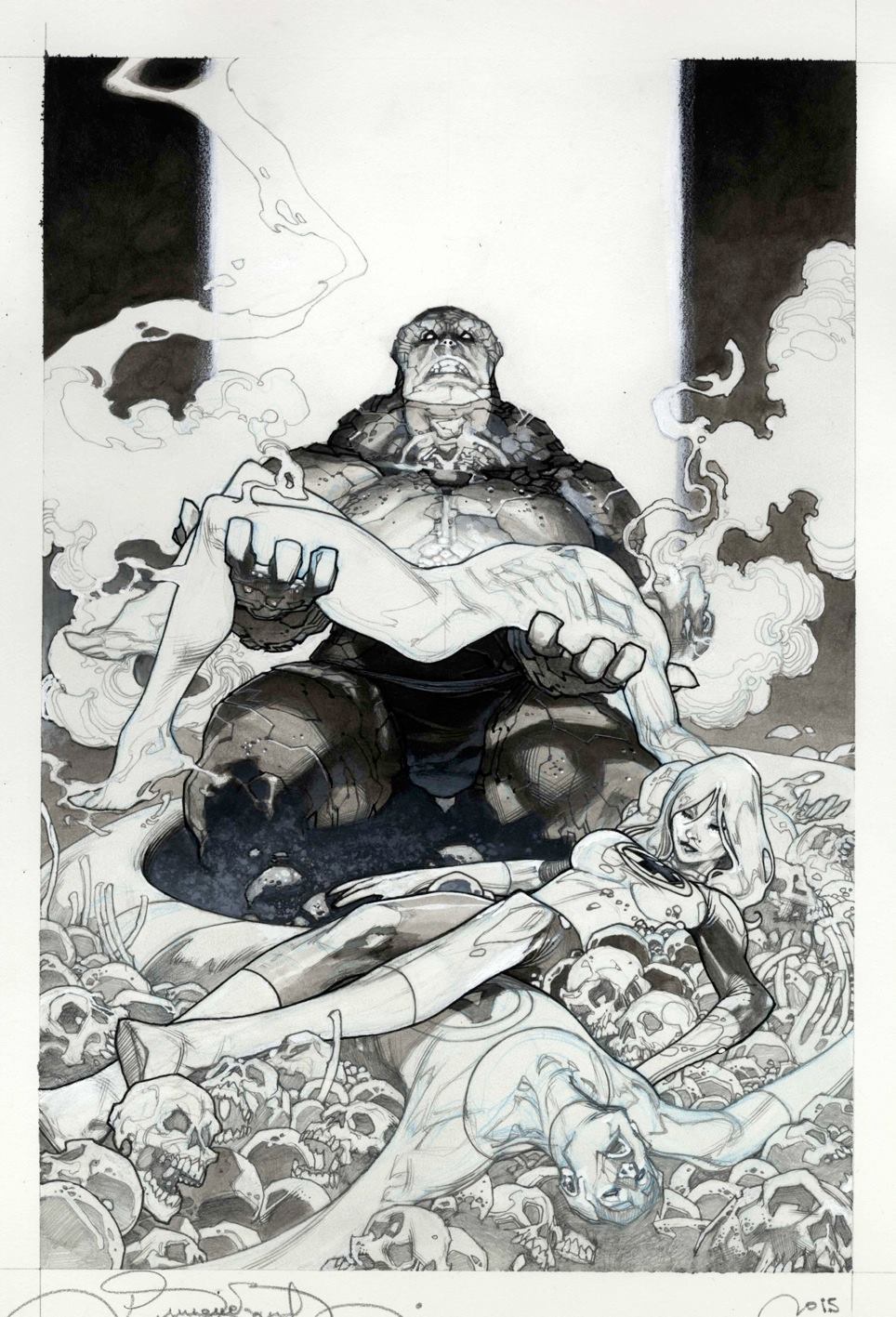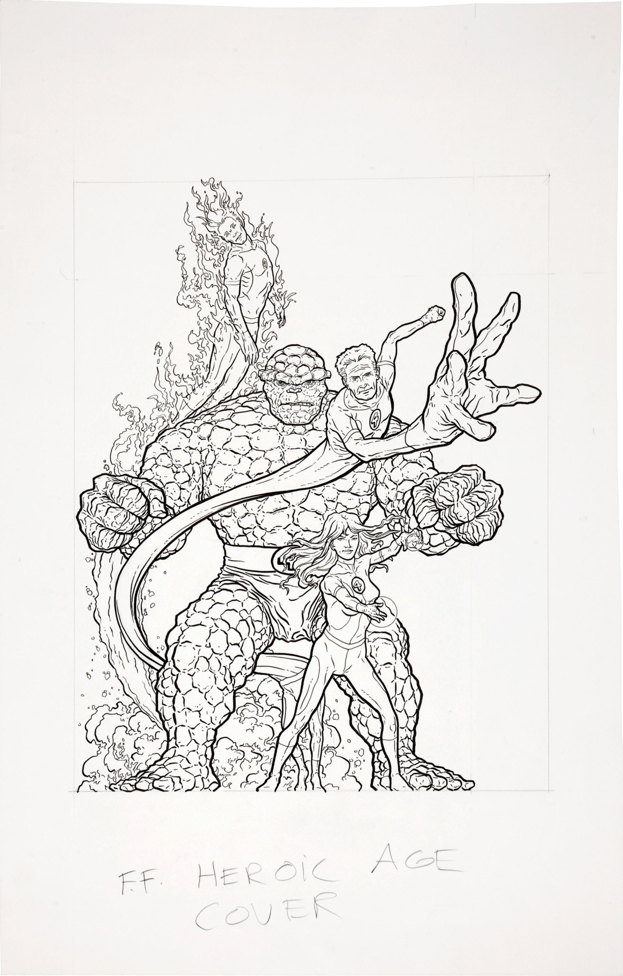 Les étapes de la couverture de Bianchi pour Dark Reign: Fantastic Four # 1 (la première histoire d’Hickman sur les FF avant son arrivée sur l’ongoing).