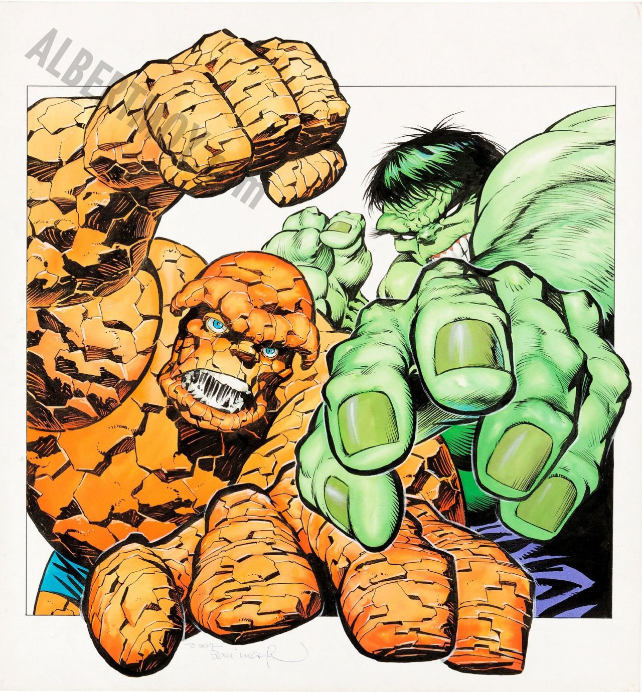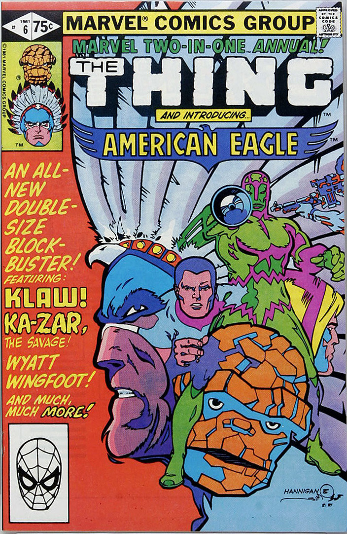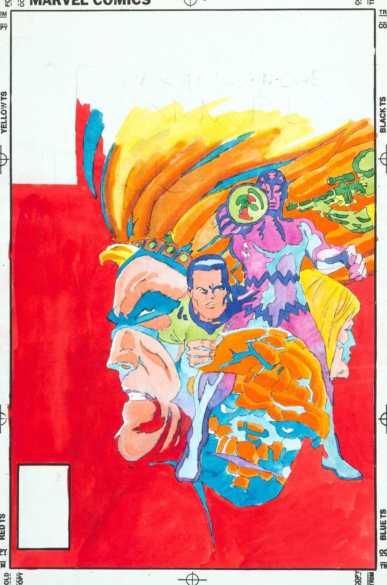 « Original, color guide, and final cover art by Ed Hannigan (pencils) and Walt Simonson (inks and colors?) from Marvel Two-In-One Annual #6, published by Marvel Comics, 1981. »