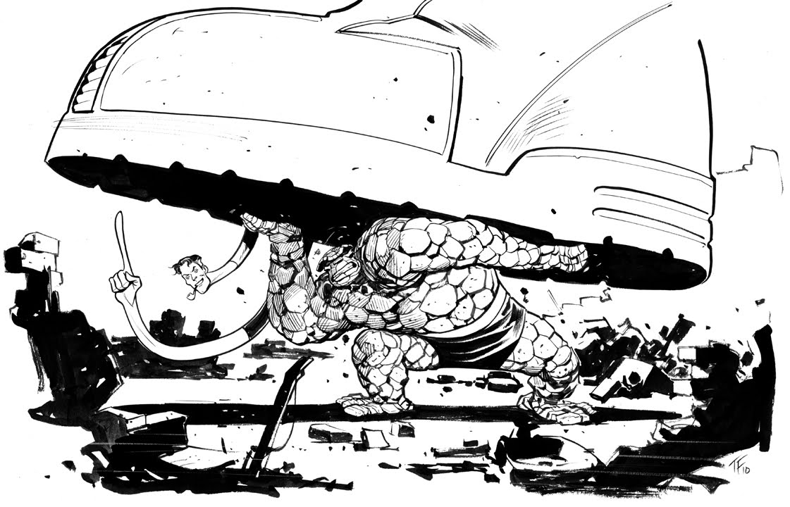 Now I wish I could work on this story: I have already a bit of setup: Ben and Reed part ways (not in a good way). After a few years Ben is a PI and (femme fatale) Sue steps in his office. She wants Ben investigating on the murder of Mr Fantastic.