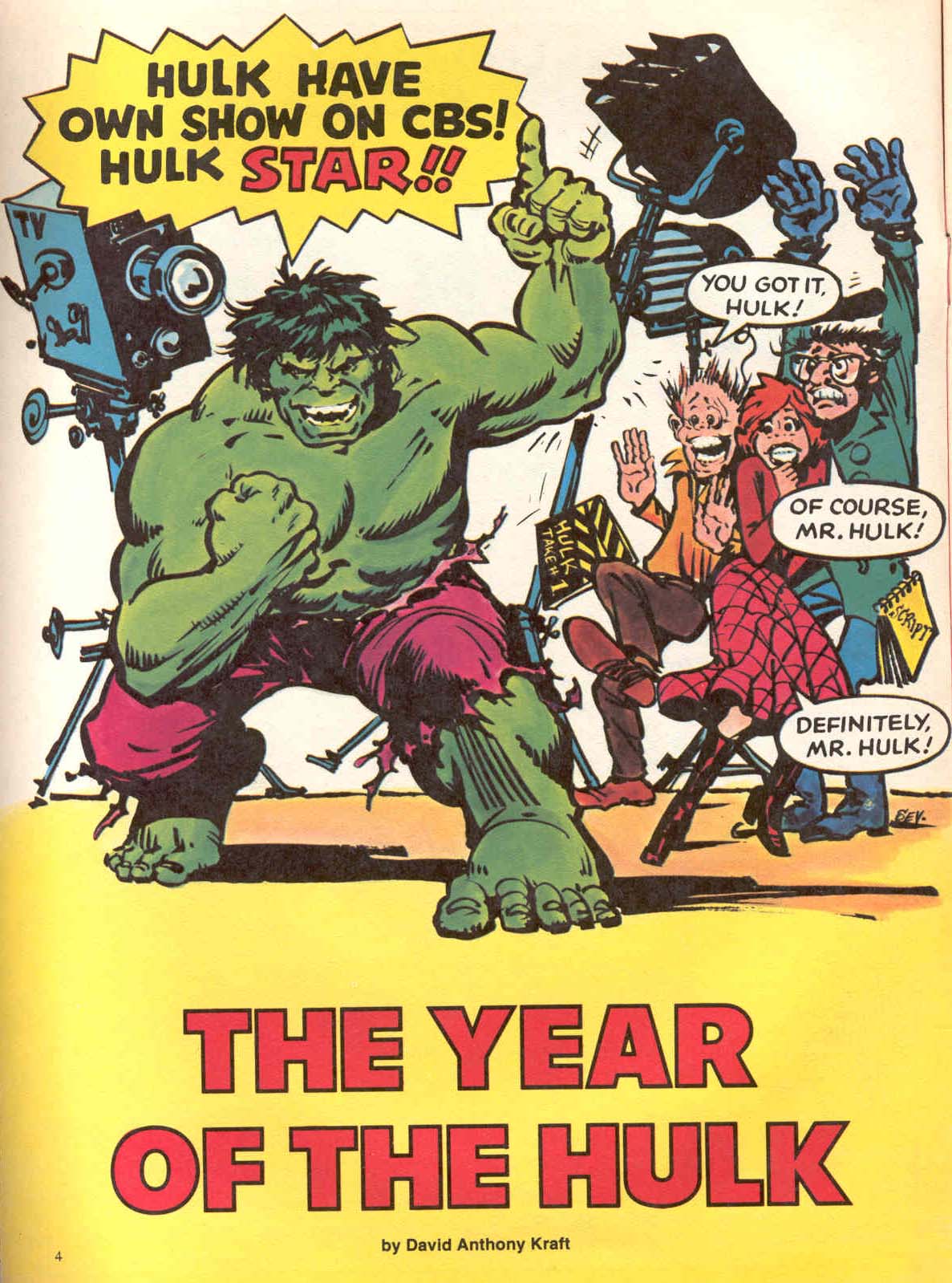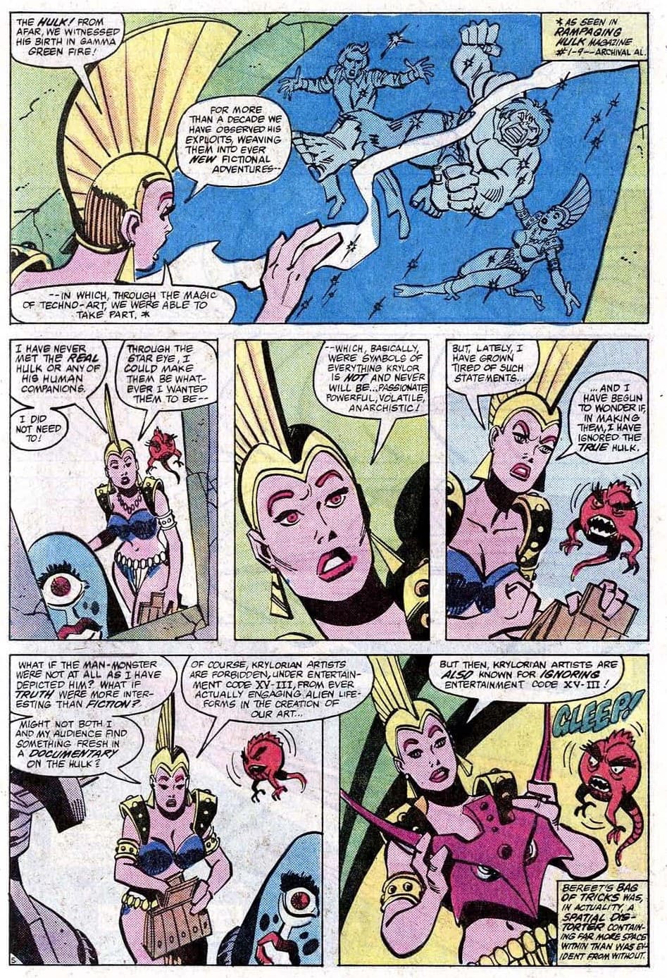 D’ailleurs, pour l’anecdote, Bill Mantlo, dans ses épisodes de la série régulière, a trouvé une astuce afin de placer les récits de Rampaging Hulk dans la continuité. En fait, il s’agit de fictions destinées à la télévision extraterrestre, programmes réalisées par une extraterrestre appelée Bereet.
