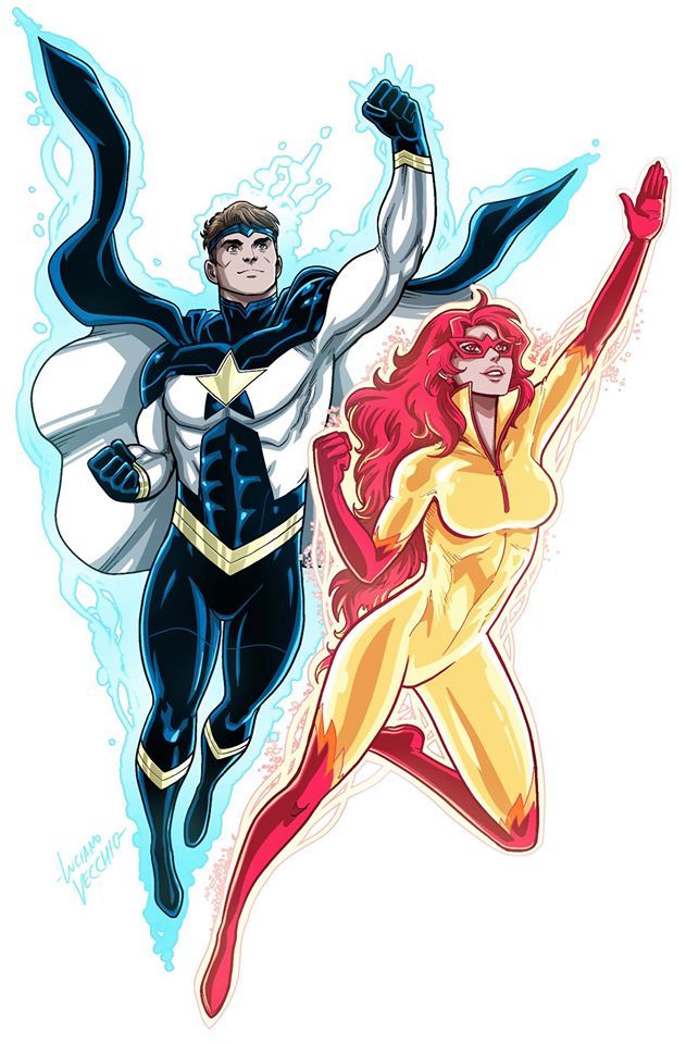Justice et Firestar par Luciano Vecchio :