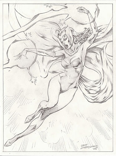 The one selected for developing into a fully-rendered cover was the second one, so I then drew it in pencil on a piece of letter-sized paper.