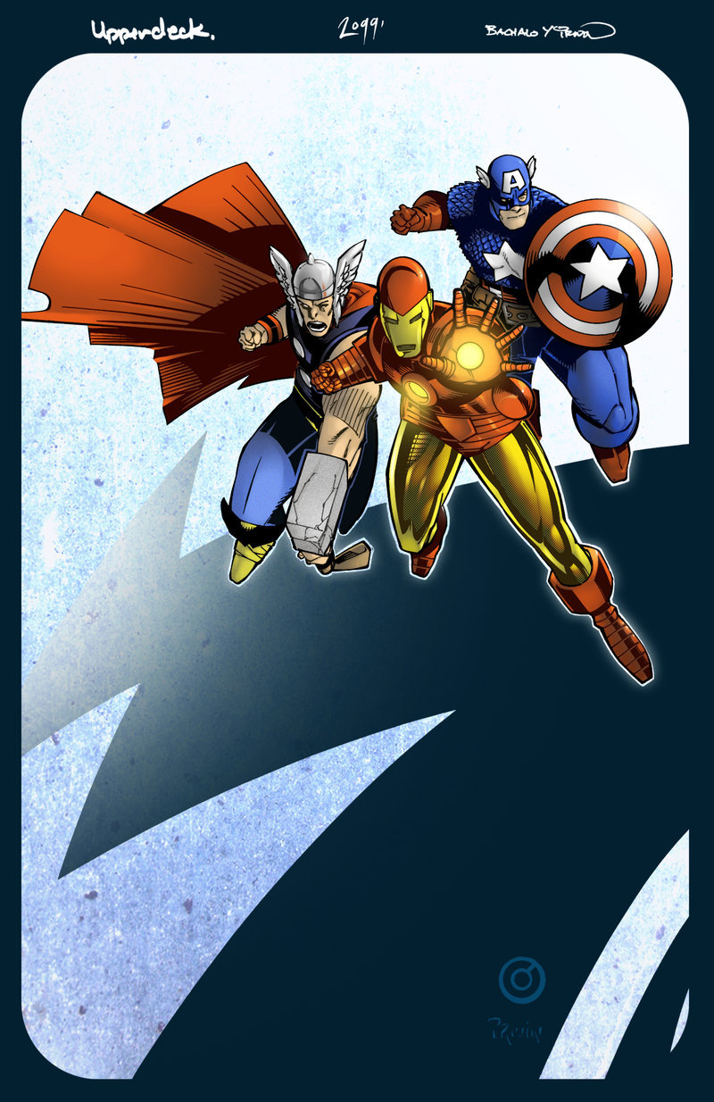 Kurt Busiek : « Carlos Pacheco was up for a contract renewal, and told Marvel he wanted to do some sort of AVENGERS project, and he wanted me to write it. So we cooked up a story idea, and at the last minute, it got scrapped. And I’d been planning to do a Kang-Immortus War in AVENGERS, so I came up with a way to shift it over into its own series, thanks to an inspired suggestion by Mark Waid to use Avengers from many different eras. »