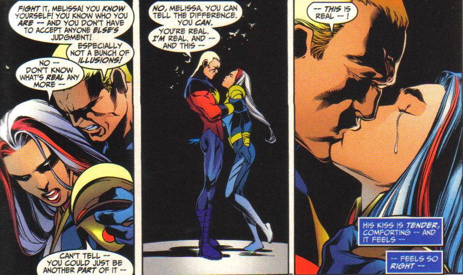 Kurt Busiek : "I like the original Vision-Wanda romance a lot, but various writers (notably John Byrne) had busted it up pretty good, and I thought that simply putting it back together wasn’t interesting, wasn’t the stuff of ongoing drama.
