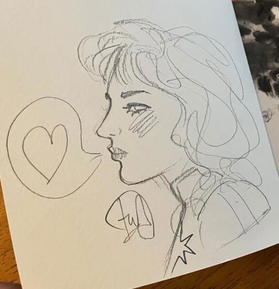 Je suis étonné, parce que le dessin m’a l’air limpide : le bras droit n’est pas dessiné en entier et de toute façon il est en arrière, et le bras gauche qui tient la feuille est en partie derrière le torse.