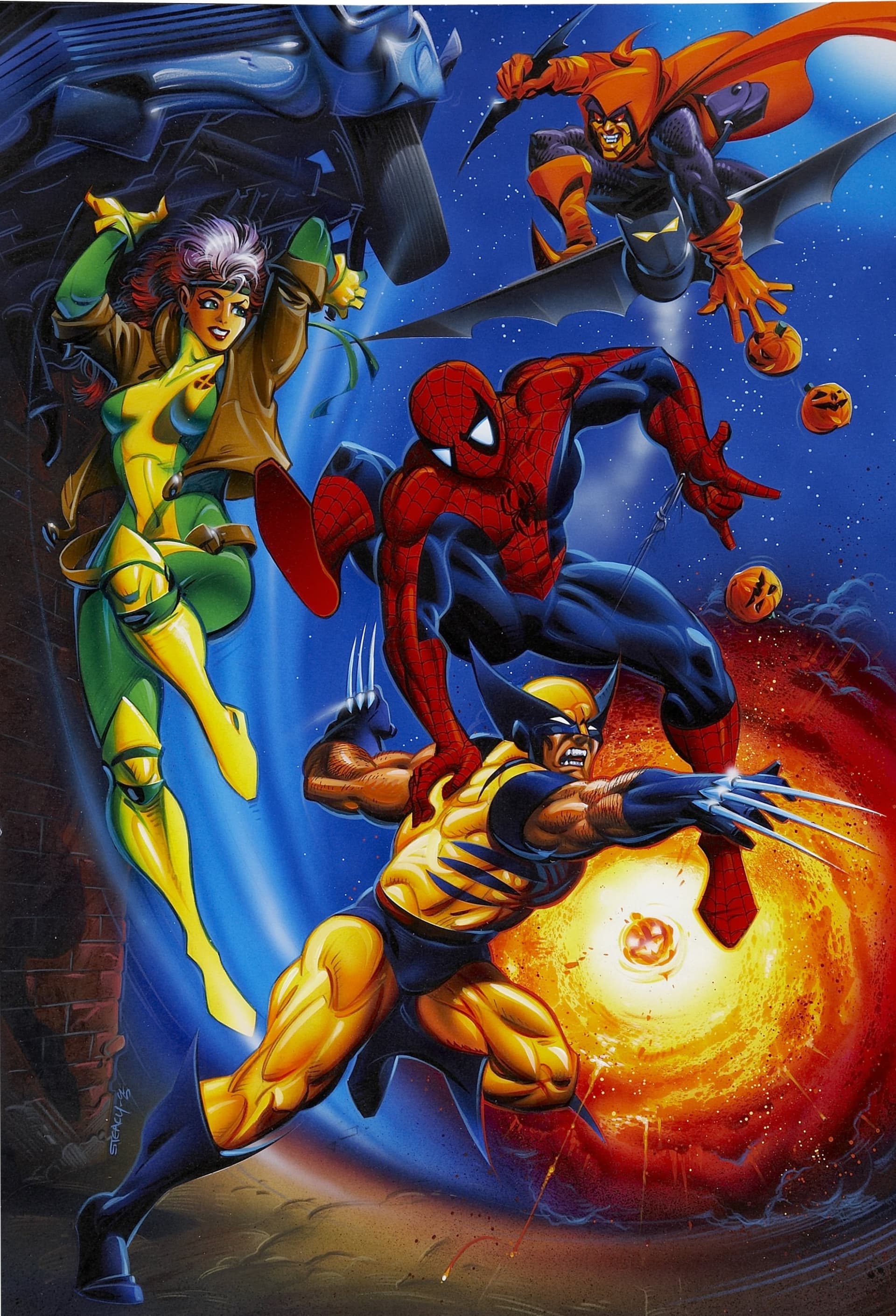 Ken Steacy’s original painted artwork of Rogue, Wolverine, Spider-Man and The Hobgoblin done for Totally (Fox) Kids Magazine.