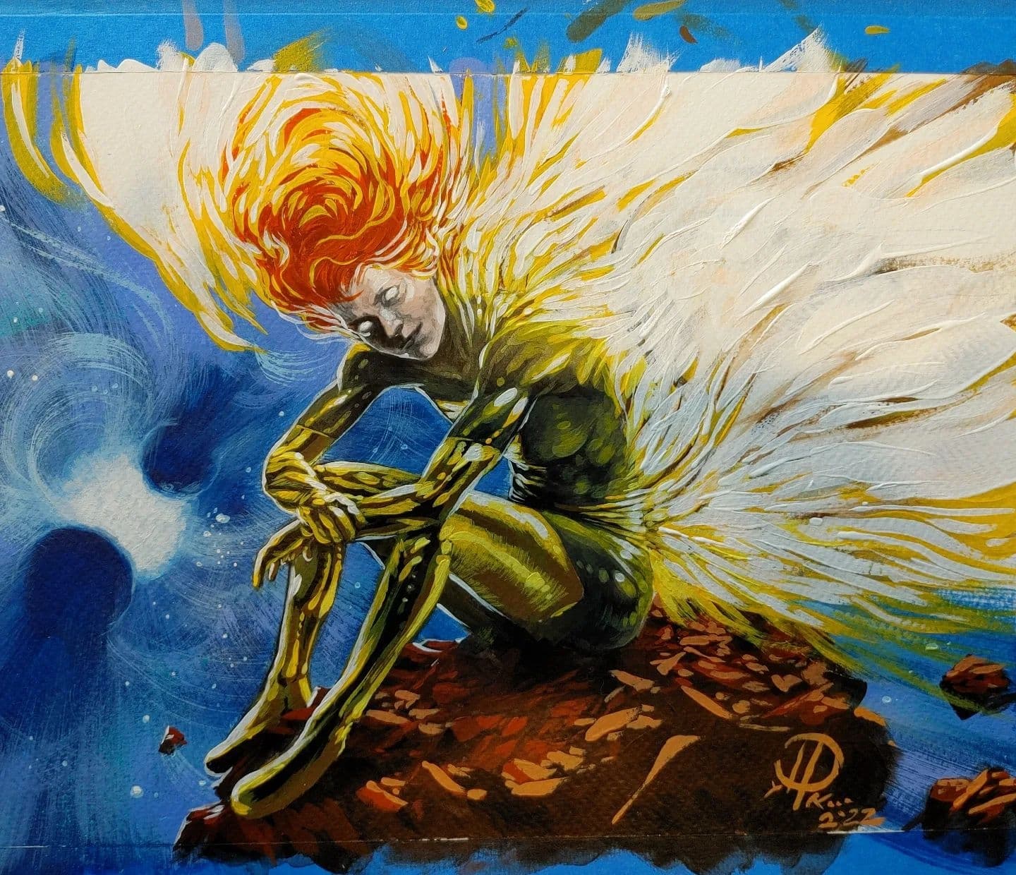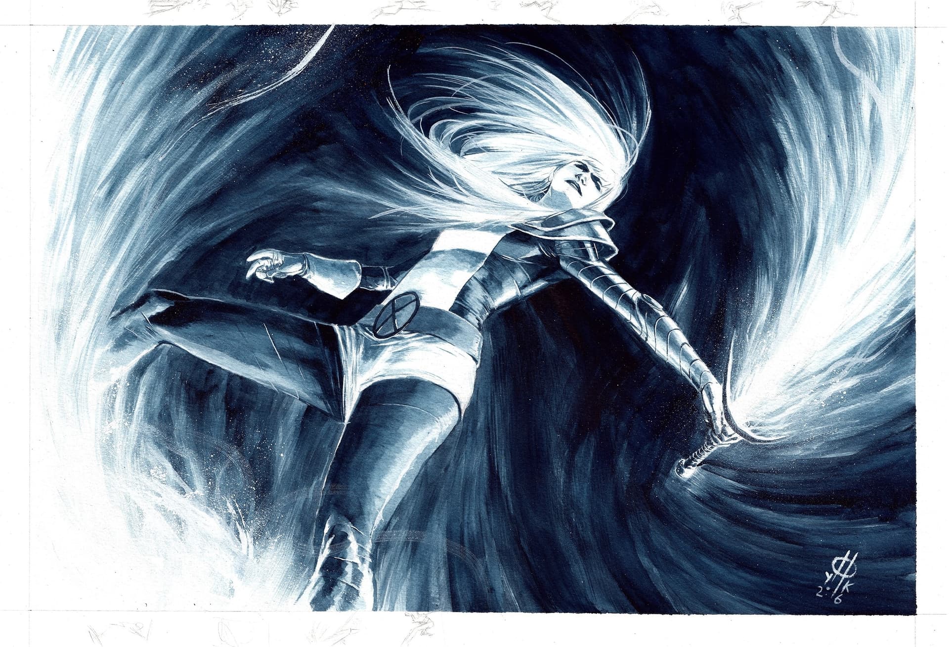 La colo me paraît cependant assez contemporaine. Je me demande si ce n’est pas une commission qui a été déposée récemment sur comicsartfans et qui a suscité l’envie d’en faire une version couleur.