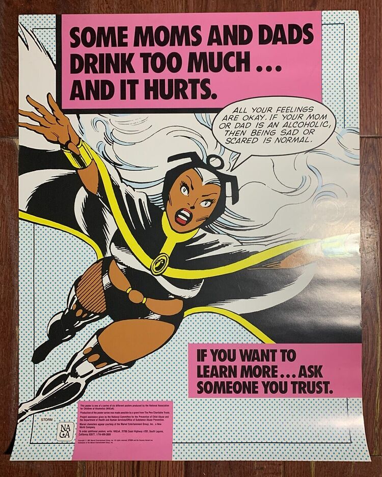 Storm apparaît dans un poster promotionnel faisant partie d’une campagne de prévention contre l’alcoolisme parental, en 1987 :