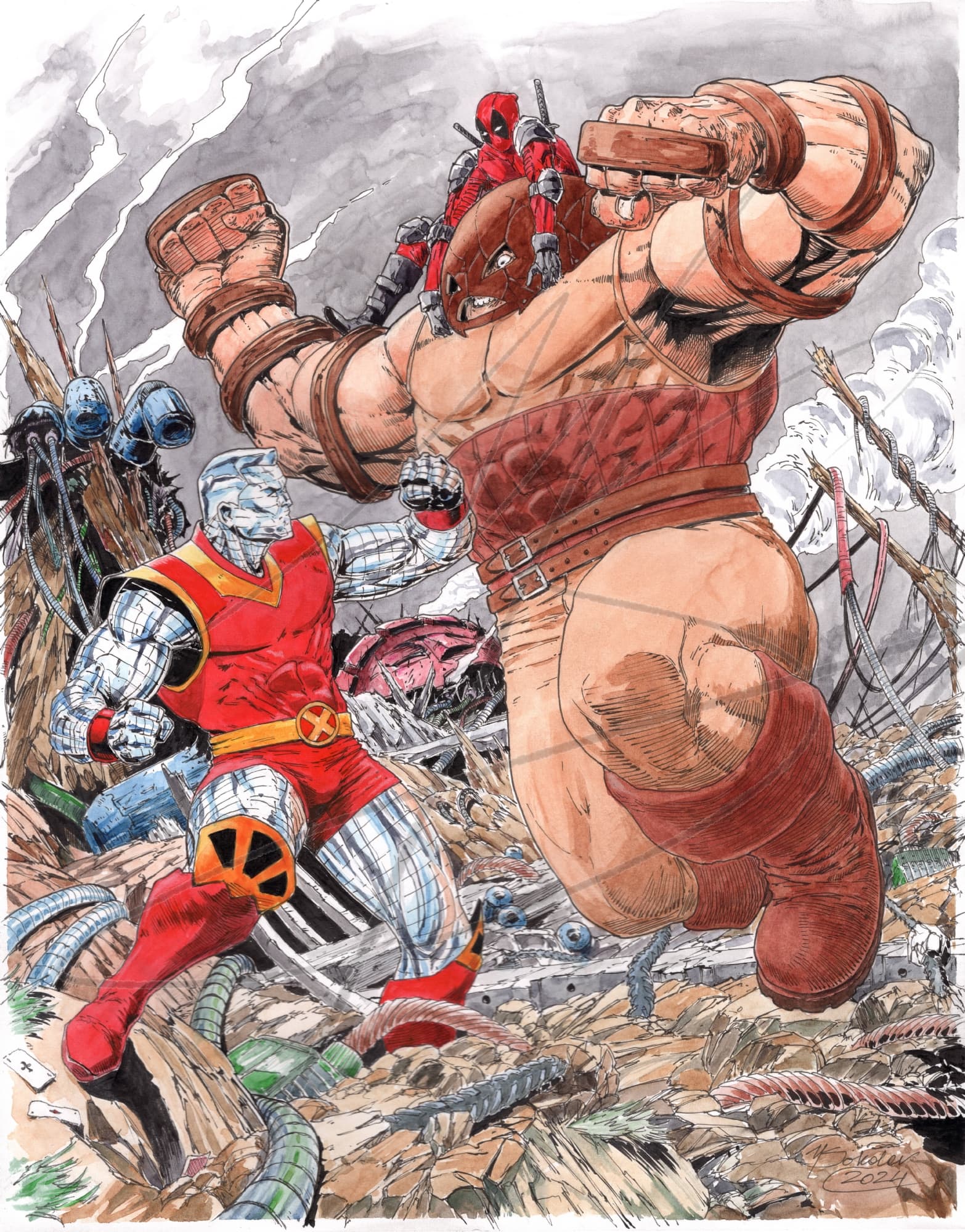 Colossus & Deadpool vs le Fléau par Yevgeny Sokolov