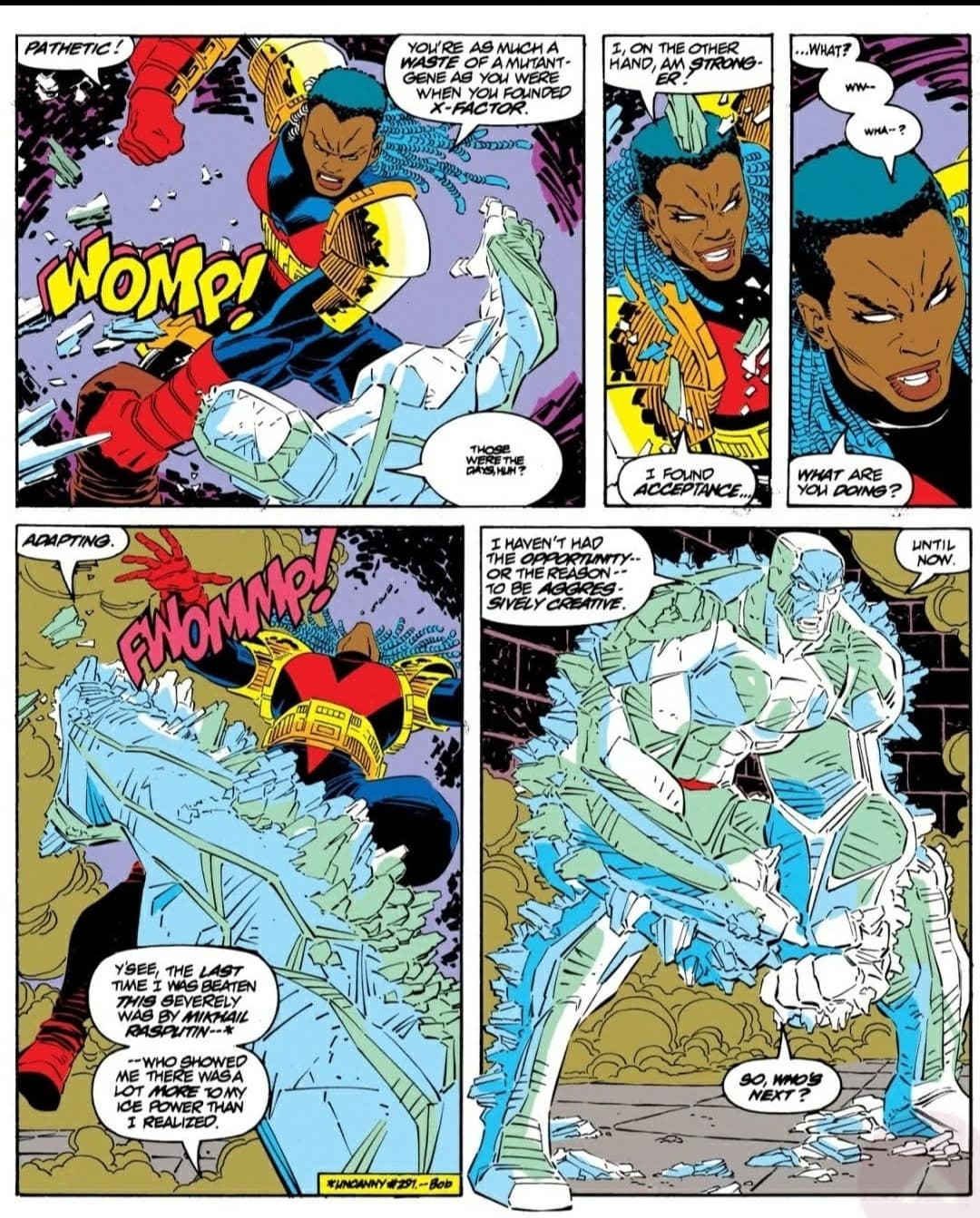 D’emblée, le groupe de candidats est divisé en deux catégories pour leur examen d’entrée/crash-test ; ceux destinés à rester (Tornade, Colossus, Diablo et un Wolverine qui devra attendre Byrne pour être plus mis en avant) et ceux destinés à ne pas faire long feu (Banshee, Sunfire, Thunderbird). Cette idée est finalement abandonnée (sauf pour Sunfire qui jettera vite l’éponge). Ne sachant pas trop quoi faire du peu sociable Épervier (au delà de sa propension à contester l’autorité de Cyke, une fonction qu’il partage avec le griffu canadien), celui-ci finira pas être dégagé peu après d’une manière plus définitive. Quant à Sean Cassidy, il s’accrochera jusqu’à 1979, en finissant par s’en aller en même temps que l’editor Roger Stern.