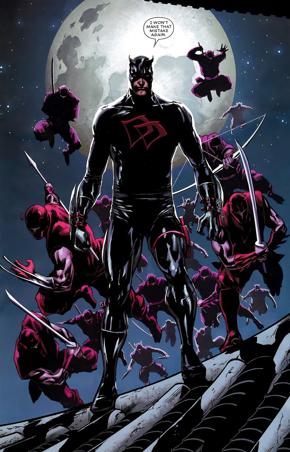 Après la fin du run de Brian Michael Bendis, j’ai un peu laissé tomber la série Daredevil…je ne sais même plus pourquoi, j’ai peut-être fini par en avoir marre du ton de la série, du trop-plein de sinistrose, d’une nouvelle descente aux enfers de Matt Murdock, ce qui m’a donné envie de mettre mon argent dans autre chose. Je n’ai donc pas lu la prestation de Ed Brubaker puis celle d’Andy Diggle…à une exception près, la saga Shadowland que Panini avait publiée en kiosque. Je n’en avais pas gardé un bon souvenir…et la relecture treize ans plus tard m’a rappelé les défauts de ce mini-event…