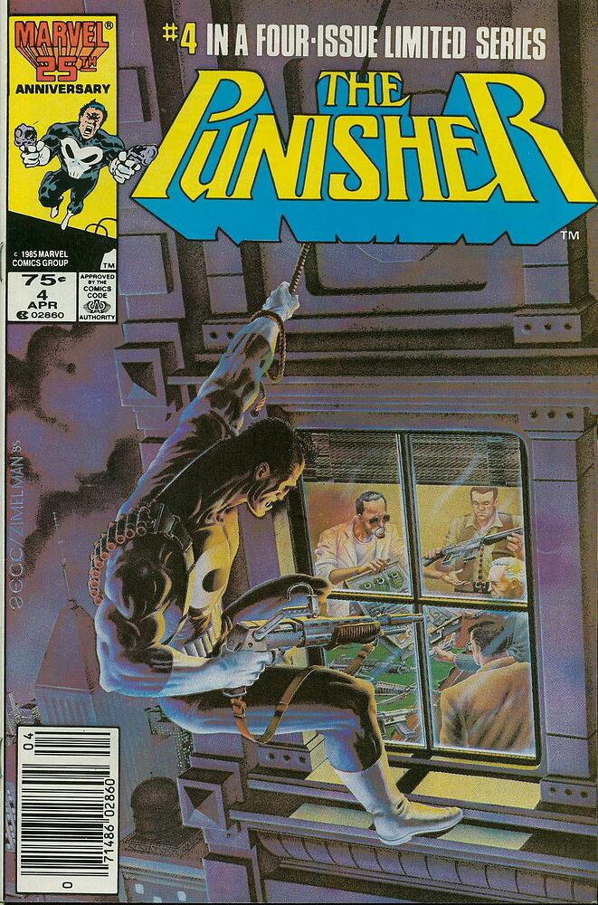 C’est dès le début de 1986 (mais quelle drôle d’année pour les comic books !), d’après la couverture, que parait la première mini-série du Punisher, soit plus de deux ans après sa dernière apparition. Steve Grant assure le scénario et Mike Zeck gère le dessin et en partie la couleur… presque jusqu’au bout (j’y reviens plus tard).