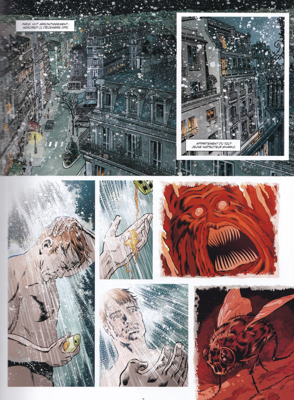 L’enquête est menée par deux policiers, Franck et Florence, qui se partagent les témoins (et commettent quelques erreurs), ce qui permet aux auteurs d’alterner les séquences et de distribuer les révélations (certaines sont devinables). Le personnage central, le jeune inspecteur Sharko, est présenté comme un gars pas vraiment au fait des évolutions de la société au détour de dialogues, mais c’est un peu forcé et, surtout, si l’histoire se déroule en 1991, le scénario de Brunschwig nous est contemporain et lui, pour le coup, est en prise avec ce ton, ce qui crée un décalage entre ce qui est dit et la manière dont c’est dit. Dans l’ensemble, ça fonctionne plutôt pas mal. Les transitions sont plutôt abruptes et la toute dernière séquence n’est pas d’une limpidité folle.