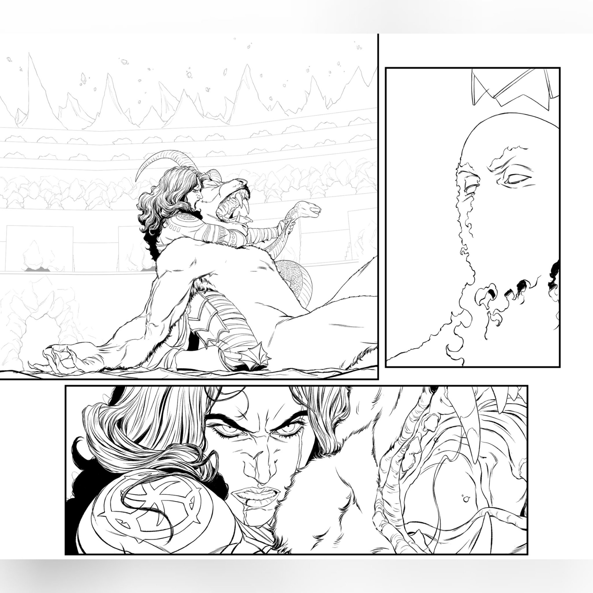 Très prenant et très bon, encore. Kelly Thompson poursuit son très bon travail d’adaptation et de surprises, avec ici Diana qui interroge une « presque gentille » Dr Poison, qui révèle la présence d’une Amazone dans un labyrinthe situé dans les souterrains de la Zone 41, construite volontairement dessus. Diana lui fait ramener ses Tetra-araignées et les envoie en Enfer, puis la menace de représailles si elle menace encore Gateway City. Diana passe dans son foyer, croise ses proches à qui elle évoque ses obligations vis-à-vis de certaines malédictions, puis se transporte dans le labyrinthe alors que Steve l’alerte après s’être renseigné dessus. Un flash montre une jeune Diana qui parle à Circé d’une future rencontre avec Artémis, et au présent, dans le labyrinthe, elle y découvre un Minotaure (Ferdinand) qui protège une sirène de Fish-Men, et elle les aide car son Lasso confirme son innocence. Ils sont ensuite interpellés par Clea, non la Reine Clea comme elle se proclame en marchant sur les Fish-Men qui la servent, et Diana ne voit en rien en elle d’une Amazone…
