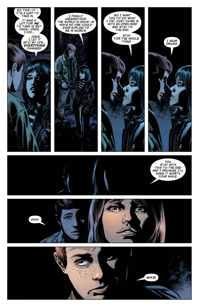 Quelle belle réussite ! C’est un plaisir de lire Bendis ici, surtout aidé par un Ryan Sook inspiré, très efficace dans une belle sobriété. J’aime beaucoup, je ne pensais pas dire cela, mais c’est un plaisir !
