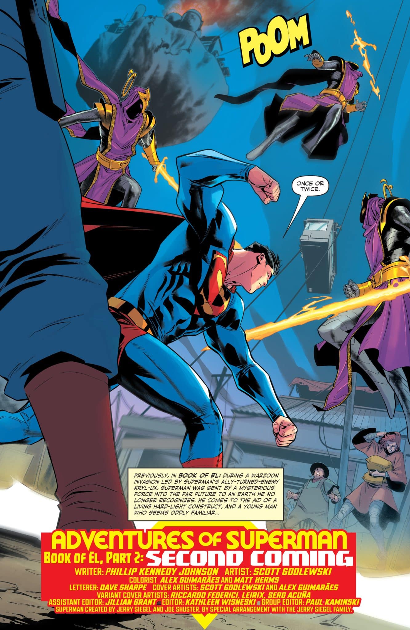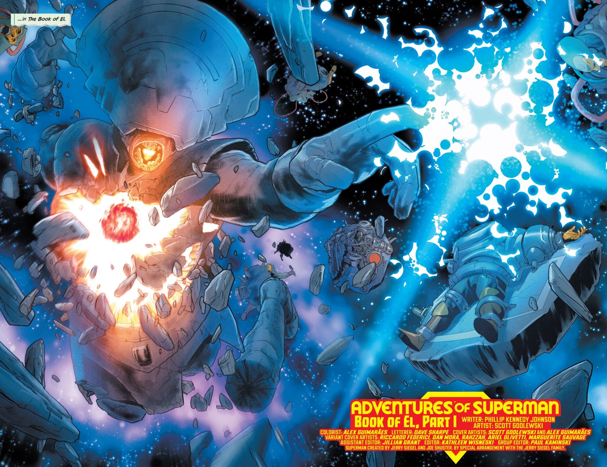 Superman returns! Fan-favorite Future State: Superman: House of El creators Phillip Kennedy Johnson and Scott Godlewski reunite for Adventures of Superman: Book of El! As the Super-Family settles into a well-earned time of peace, a powerful ally-turned-enemy invades Earth with an army at his back and a god-aspect of Olgrun, mad god of the First World. When even the Super-Family lacks the power to stop him, Superman is sent against his will to a place even he’s never been…where he’ll find allies he could never have expected. Concluding the events of Future State and Phillip Kennedy Johnson’s Action Comics, the next epic adventure begins here!