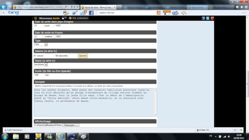En parlant d’ajout de série, j’ai vu dans la liste que vous proposiez des films qui manquaient donc j’ai tenté de faire au moins cinq ajouts de série (selon les paramètres qu’on demandait pour la proposition d’une série).