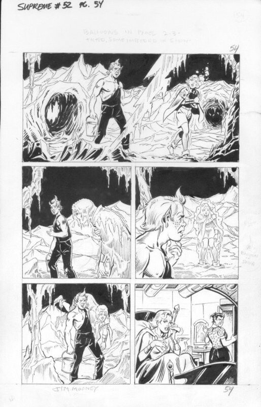 Dans Supreme, ça passe par la reprise de tout le catalogue des kitscheries, mais ça va jusqu’à inviter Jim Mooney, dessinateur historique de Supergirl, pour qu’il illustre les aventures de Suprema. Moore essaie de retrouver la saveur des comics d’antan, d’y porter un regard critique.