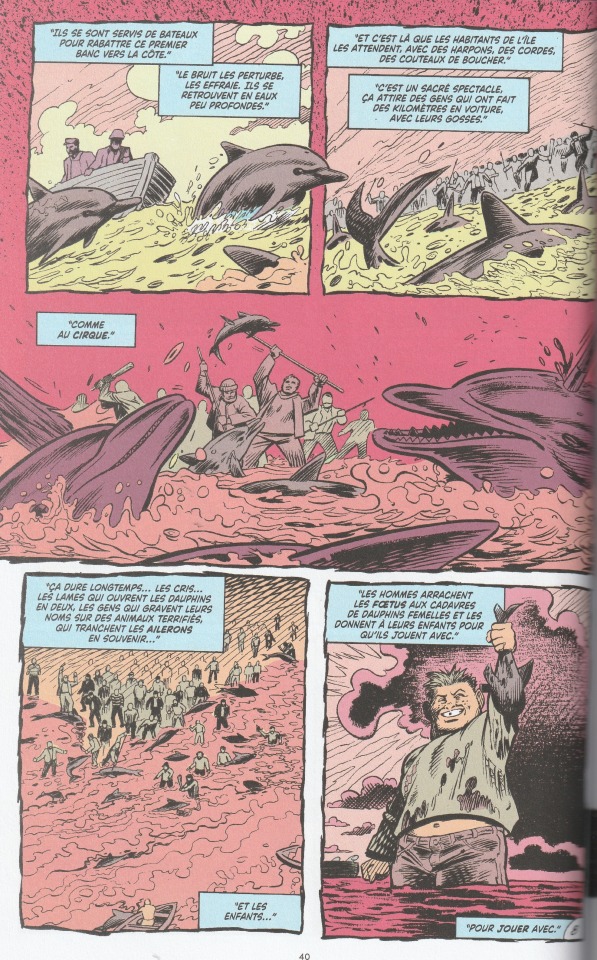 Un volume riche. Si le précèdent avait commencé à nous parler de tous les sujet vu dans ce tome (le #5 est au fond un résumé de son run en entier… artifice qu’il utilise souvent avec un épisode qui sert un peu de coude pour ses arcs): la lutte pour le droit des animaux, l absurdité de la violence et de l utilisation de al violence dans la fiction, casser le 4eme mur, parler de la créations et surtout de la création des comics…