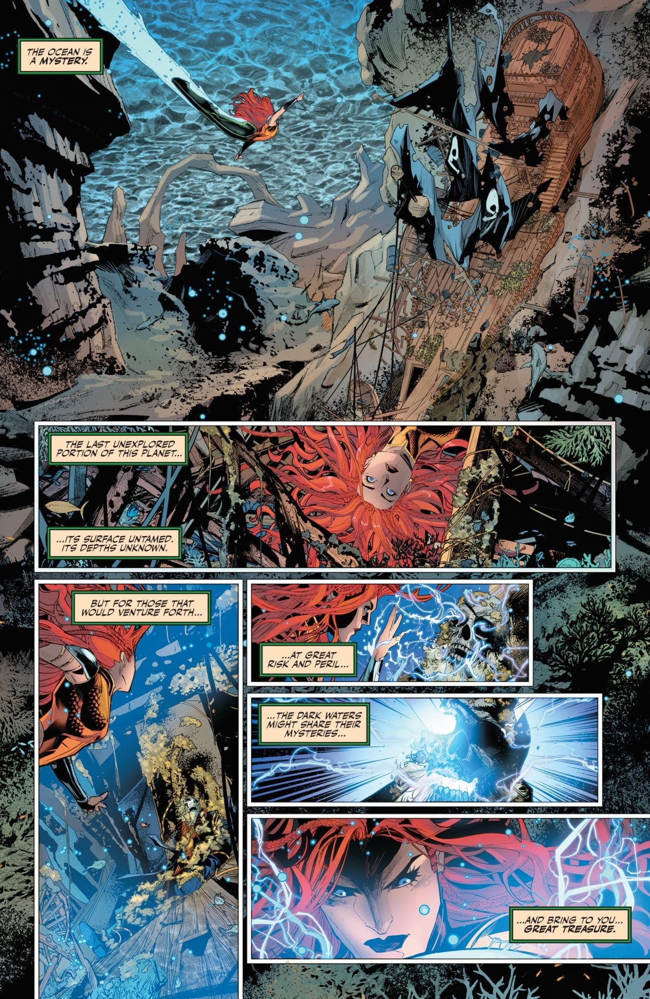 Cursed treasure! Ghost pirates! Spooky mysteries abound as darkness rises from the deep, awakening creatures long since dead. Something is infecting the high seas, and it’s up to Aquaman, the avatar of the Blue, to defend it before it’s too late!