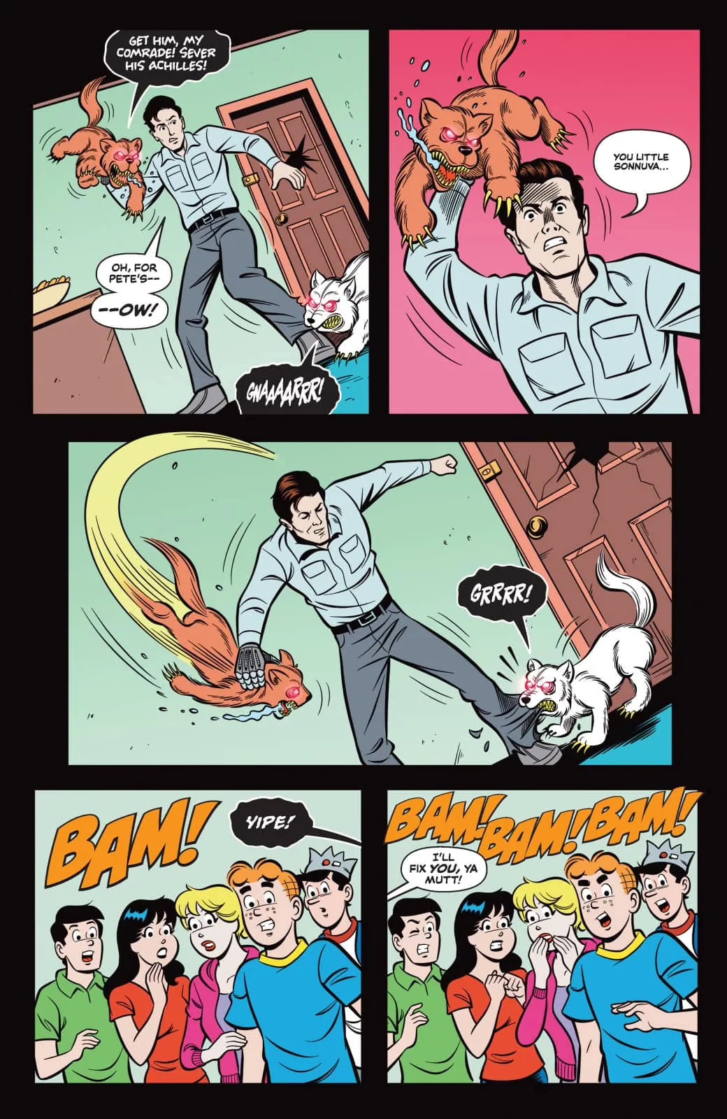 DO YOU WANT THE BAD NEWS, OR THE WORSE NEWS? The bad news is that Archie Andrews has accidentally summoned the Army of Darkness to the peaceful streets of Riverdale — and that’s pretty bad news! But the good news is that when Archie read the cursed passage in question from the pages of the Necronomicon Ex Mortis, he didn’t properly complete the incantation — which means there’s still a chance to banish the Deadites back to the infernal realms.
