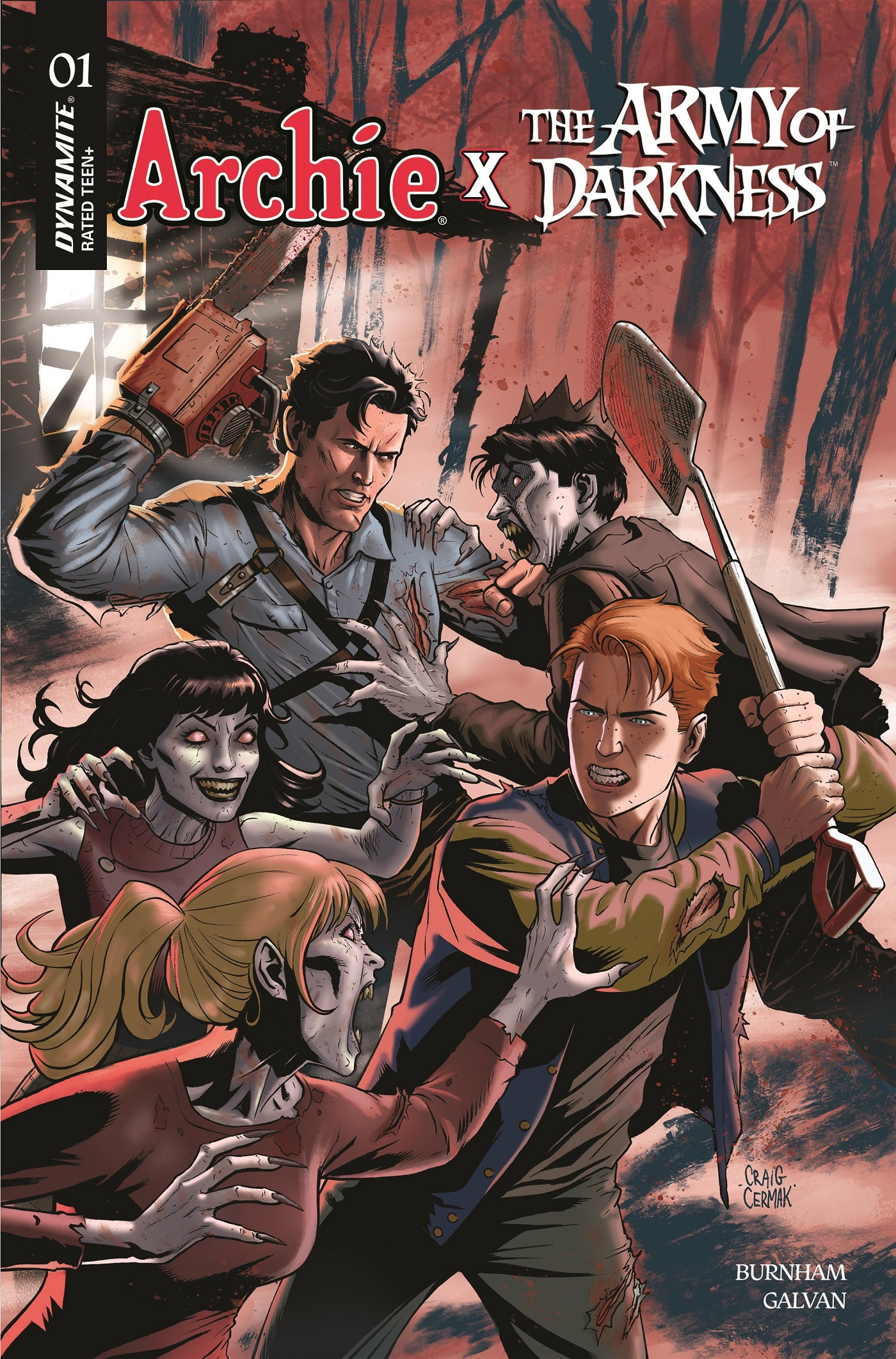 After teasing the project at New York Comic Con, both publishers confirmed that writer Erik Burnham and artist Bill Galvan will helm the chaos. Burnham, no stranger to the world of Ash thanks to Army of Darkness vs. Reanimator: Necronomicon Rising, has an impressive resume spanning Ghostbusters, TMNT, Transformers, and Godzilla — making him a perfect fit to drop the Chosen One into Archie’s backyard. Galvan, a longtime Archie artist, brings the classic, instantly recognizable Riverdale look to this bizarre mashup.