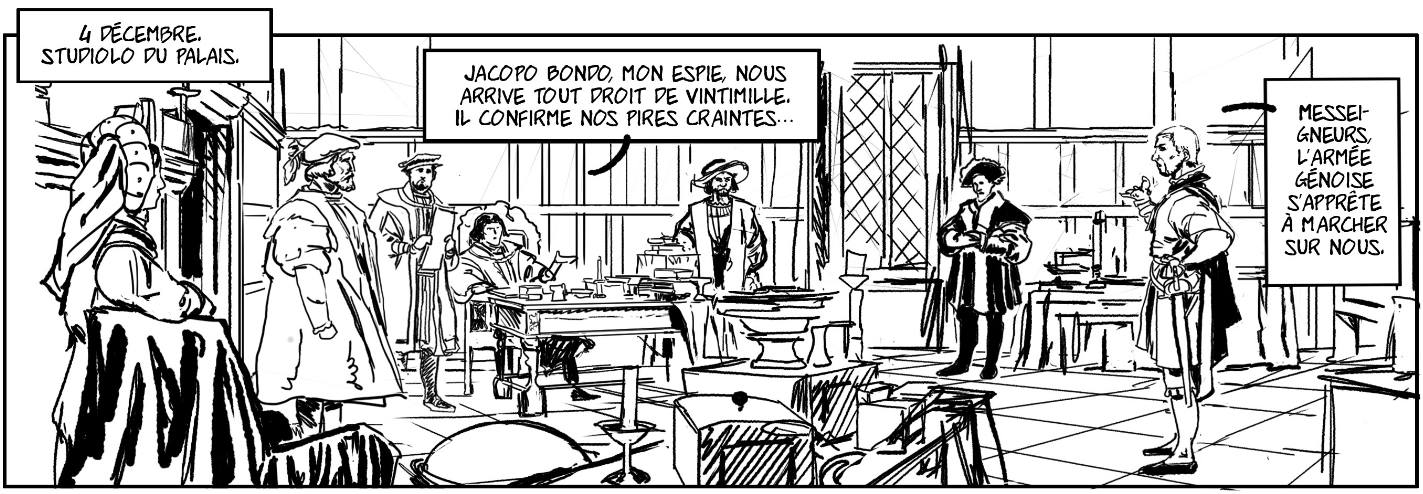 Une autre série-concept avec un co-auteur, un historien, un vrai, maître de conférence à la Sorbonne, Laurent Vissière : “Assiégés”. Qui raconte l’histoire des villes en temps de siège, en s’intéressant aux gens bien plus qu’aux faits stratégiques. L’idée est : comment la population vivait la guerre. Nous avons en cours Orléans et Monaco.