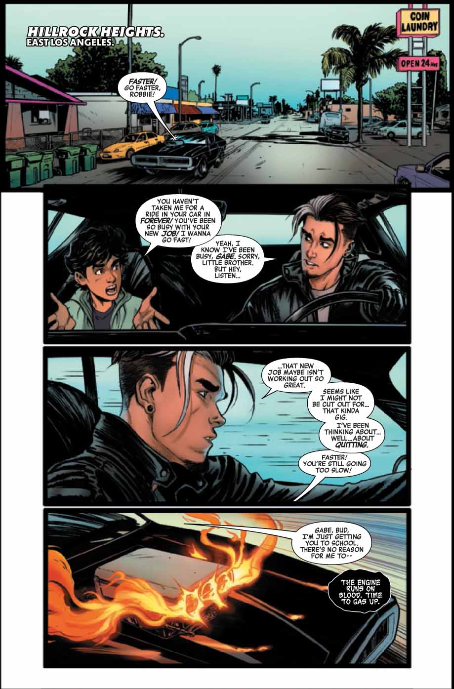 Bon, ce n’est pas extra’, quand même. Le numéro se lit bien, c’est fluide, et quelques dialogues sont cool, mais l’ensemble est quand même assez faible… voire neuneu. Le discours de Robbie sur la « famille », c’est quand même assez lourd et maladroit. La course en elle-même n’a pas grand intérêt, et le « plan » de Johnny Blaze est quand même plutôt bête.