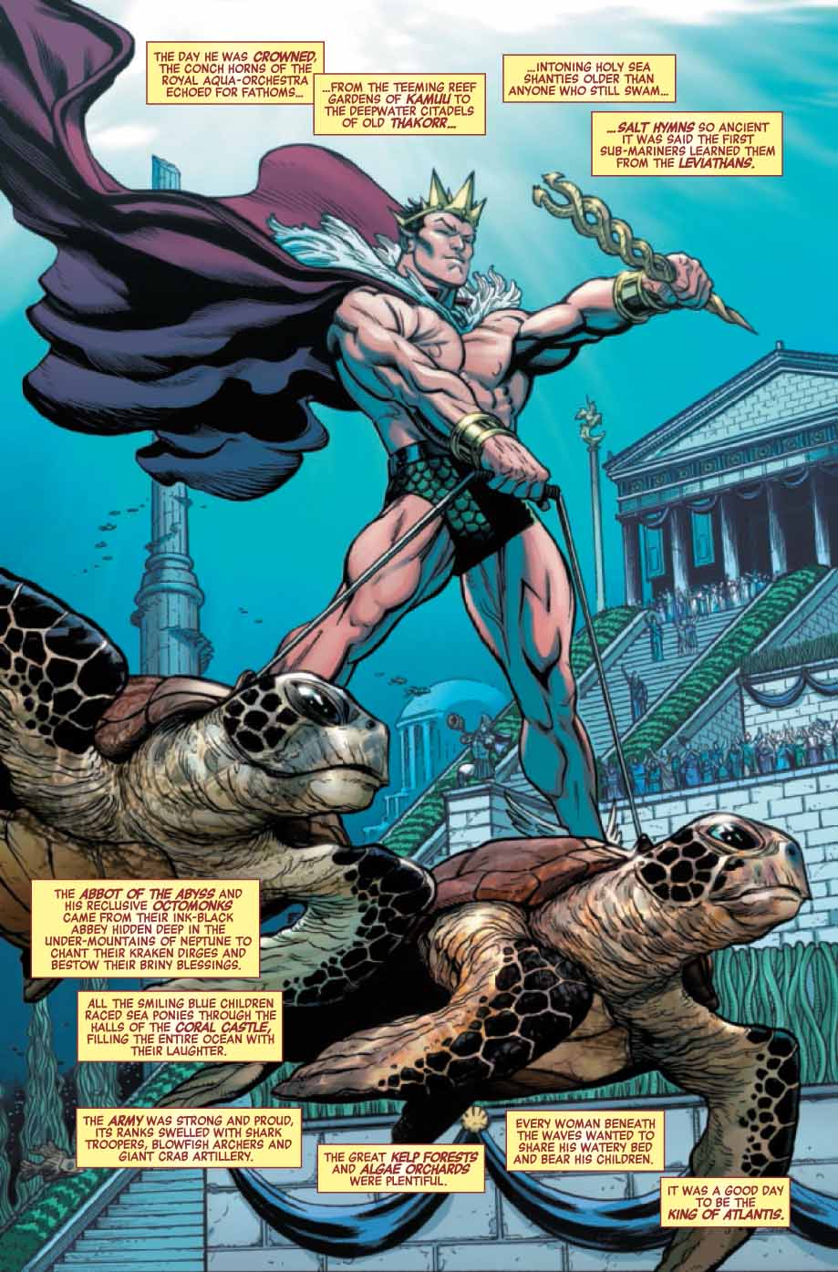 J’accepte aussi qu’Aaron prenne son temps pour poser les bases de sa grande histoire (qui risque d’être une guerre de royaumes, qu’ils soient sous-marin, cosmiques ou internationaux), mais le gros point noir du titre, qui m’insupporte régulièrement, c’est Ed McGuinness!