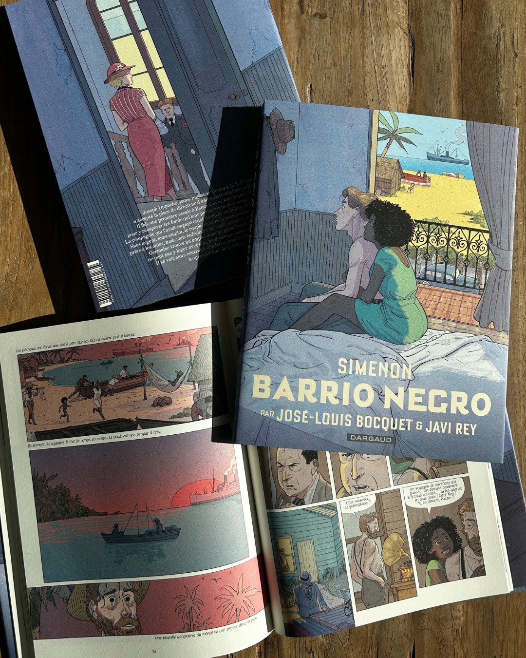 Un jeune couple, Germaine et Joseph, se marie à Amiens. Ils sont nés dans la même rue, se sont toujours aimés. Elle a un bon poste à l’administration des Téléphones, dans le service dirigé par son père. Lui sort d’une école d’ingénieur, grâce aux quelques économies de sa mère. Sauf qu’il n’y a pas de travail pour lui en France. Alors ils partent. Joseph a accepté la place de directeur de la Société Anonyme des Mines de l’Équateur, la SAME. Quinze jours de traversée et ils accostent à Panama, en attente d’une lettre de crédit pour rejoindre Guayaquil. Cette lettre n’arrivera pas. L’entreprise est en faillite. Le voyage s’arrête là. À Panama, avec ses codes, ses castes, les Européens et les Américains blonds d’un côté, et les communautés africaine et antillaise venues construire le canal, de l’autre, dans le barrio negro. Germaine retrouve les réflexes de sa classe : grande efficacité pour s’intégrer là où il faut, et mépris affiché pour celui qui ne respecte pas les convenances. C’est-à-dire Joseph. Joseph qui ne trouve pas de solutions, s’oublie dans l’alcool, accepte des métiers déshonorants, « fréquente les indigènes » et, peut-être le pire de tout, ne s’en cache pas. José-Louis Bocquet poursuit les adaptations des « romans durs » de Simenon et réalise ici un travail d’orfèvre en détaillant la déliquescence d’un couple dans ce milieu colon des années 1930. À la finesse du texte, répond celle du dessin de Javi Rey qui, en quelques traits, fait passer l’amertume sur les visages et l’atmosphère de l’Amérique centrale.