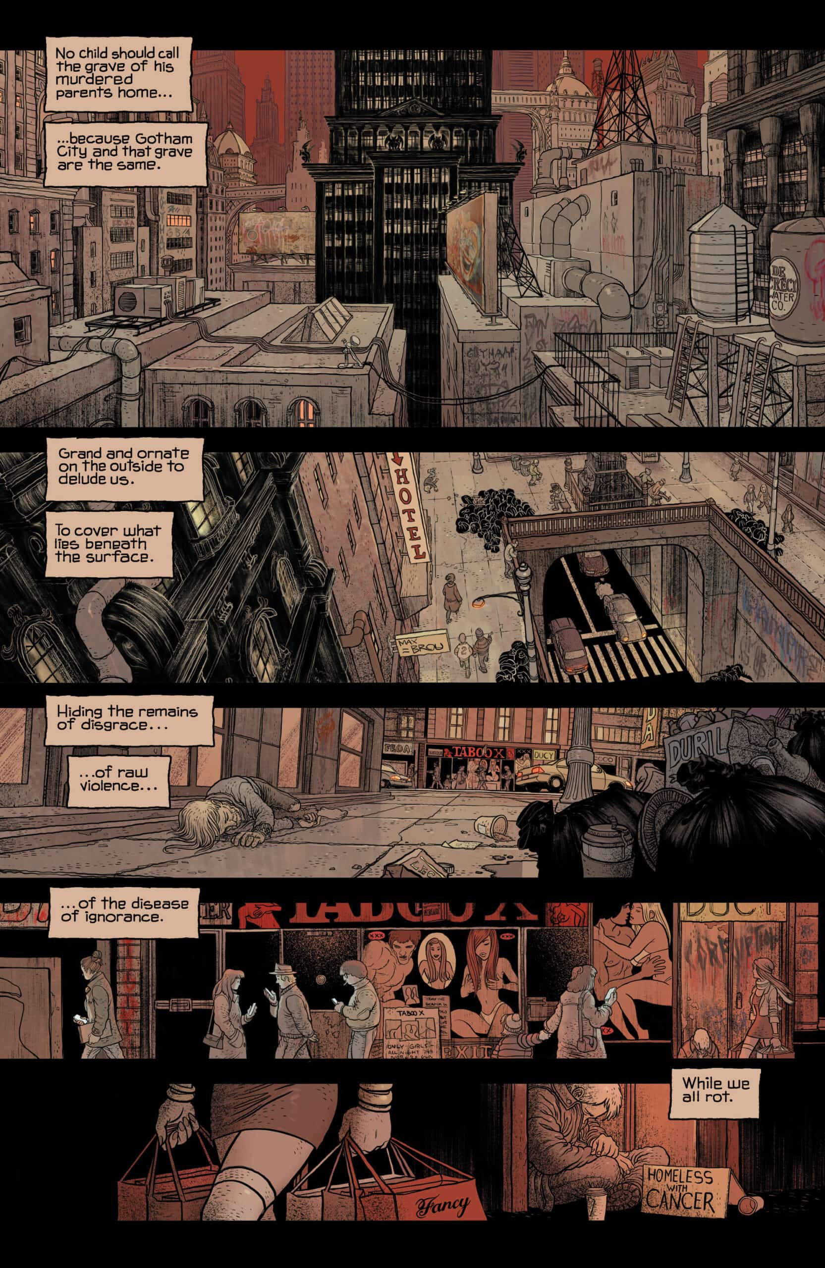 The skies over Gotham grow darker still. To decide to kill your past is one thing, but actually doing it proves to be more fraught a road than Batman ever expected…especially when that very same past grows more tightly woven into his current case with every new clue he uncovers. And the closer Batman gets to the truth, the clearer it becomes that his real enemy’s power runs much deeper than just puppeteering a few costumed criminals…to the very heart of Gotham City itself!
