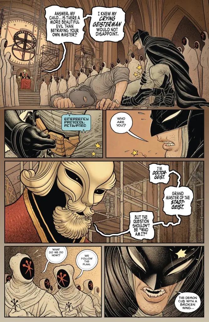 “May the hour of the devil begin…” The harrowing journey through the dark heart of Gotham reaches a fever pitch in this penultimate installment of Rafael Grampá’s visionary series! Batman’s investigation leads him into the deadly lair of Doctorgeist — where his presence is not only expected… but welcomed. Their savage fight for the soul of Gotham — and the soul of Bruce Wayne himself — will send shock waves through the city from which it might never recover. And elsewhere, the fugitive Crytoon makes a twisted acquaintance that finally gives him something to smile about…