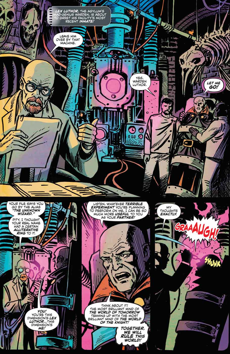 The Man of Steel and the Dark Knight need time to recover from their manic melee through the Archive of Worlds, but the heroes won’t rest for long! Despite the efforts of new friends El Diablo and Alanna, Auteur.io, the cybernetic architect of these alternate realities, seems to have the upper hand! And to make matters worse, the Archive of Worlds unleashes its most horrific story ever put to magic-infused celluloid: the dark and twisted tale of that demon from the depths: Etrigan!