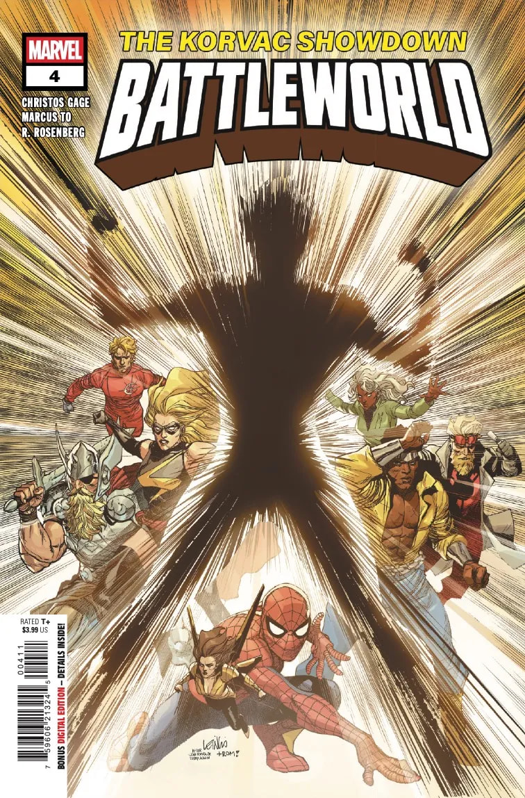 BATTLE AT THE END OF THE WORLD! KORVAC created this Battleworld… and he can destroy it! Will the heroes of this collected chaos return things to the way they were? Or will all be lost at the hands of a powerful madman? Find out in this cataclysmic finale!