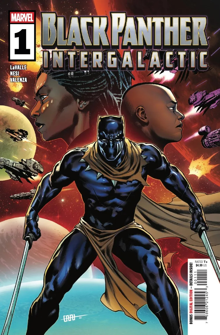 T’CHALLA, the King of Wakanda, faces the challenge of uniting all of his kingdom — on Earth and in the stars! Before he can begin, though, someone — or something — steals him away to a mysterious planet where the BLACK PANTHER must fight for his life! SHURI, his sister, works to find him — but with the king and princess distracted, will someone else seize the title of Emperor of Wakanda?!