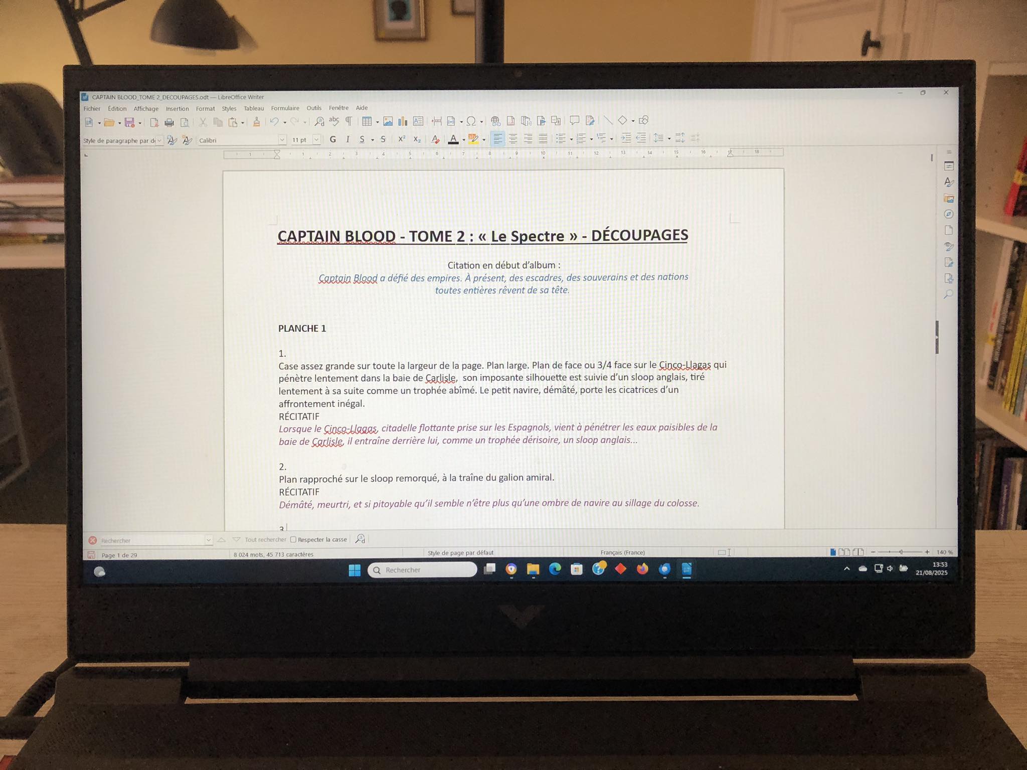 Retour au scénario pour un long marathon qui devrait durer une bonne année, avec six albums à écrire, et pour commencer deux tomes de 80 planches, la libre adaptation du roman « CAPTAIN BLOOD » avec Benoît Dellac au dessin, pour les éditions du Lombard.