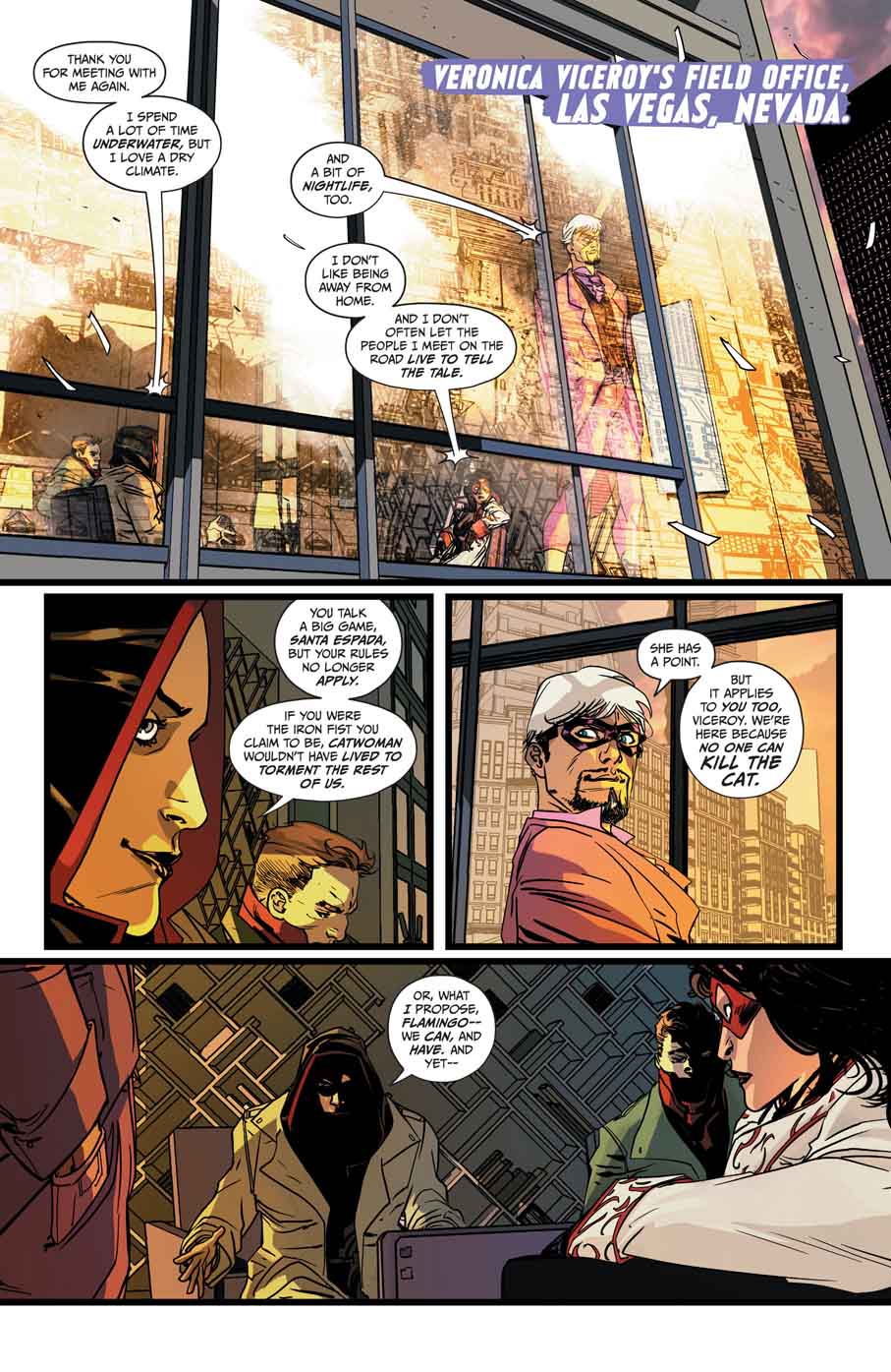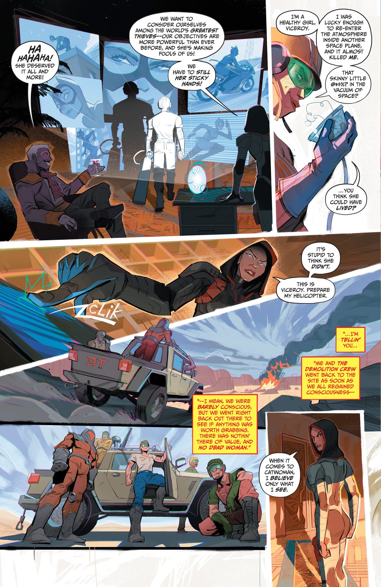 Selina’s journey has brought her everywhere, from the deepest reaches of the ocean to the cold vacuum of space, but she’s out of places to hide. With enemies closing in all around her, there’s only one place left to go — home. Prepare for the fight of Selina’s life(s) as the WHITE GLOVE launch their attack on Gotham City!
