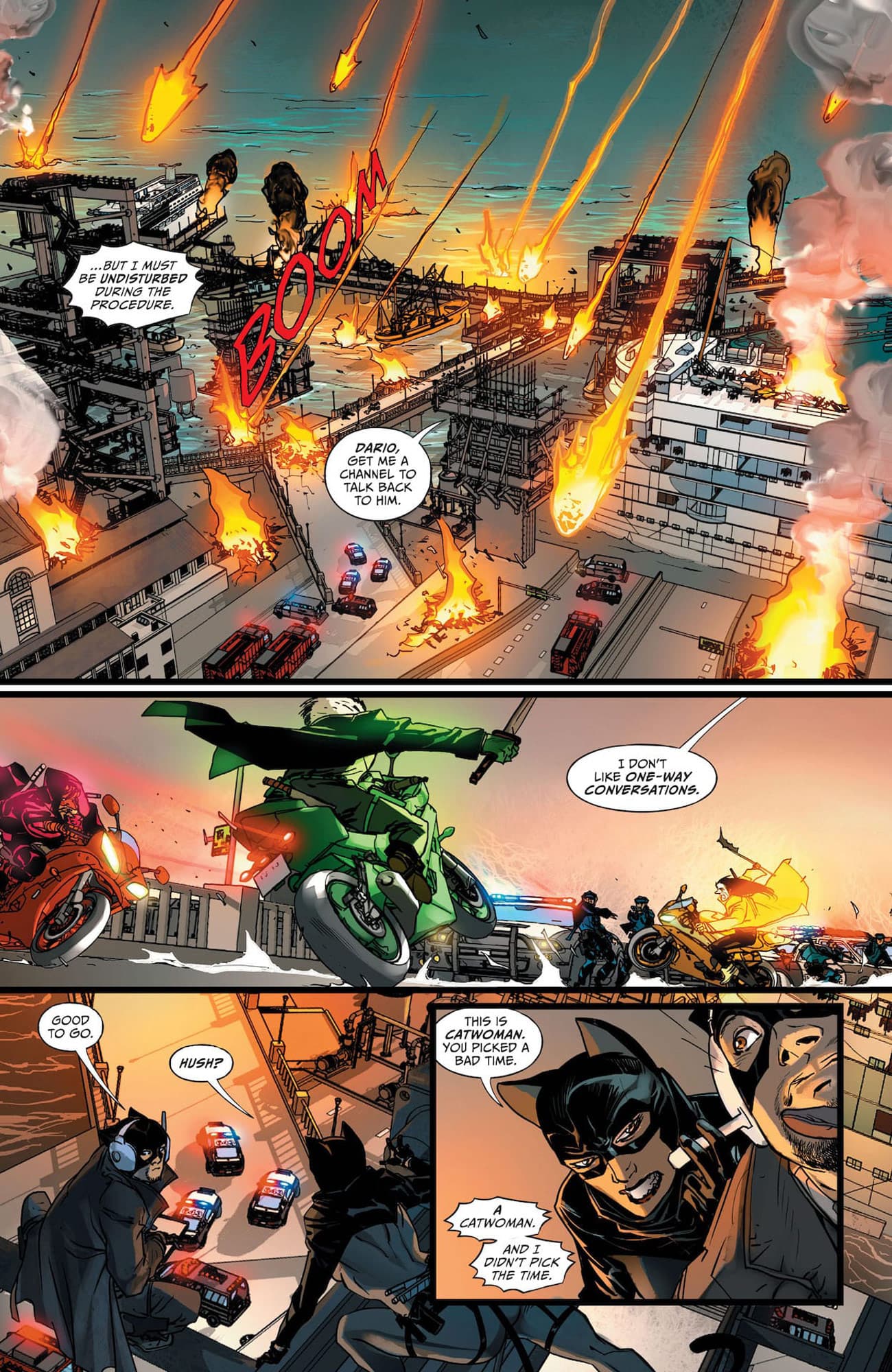 As the forces of the WHITE GLOVE prepare to put Gotham City in a stranglehold, Selina finds herself in need of emergency medical treatment from the steady hands of none other than HUSH. Will the Feline Fatale survive her procedure and live to protect her beloved precious city…or will she be reduced to fish food at the bottom of the Gotham City bay?