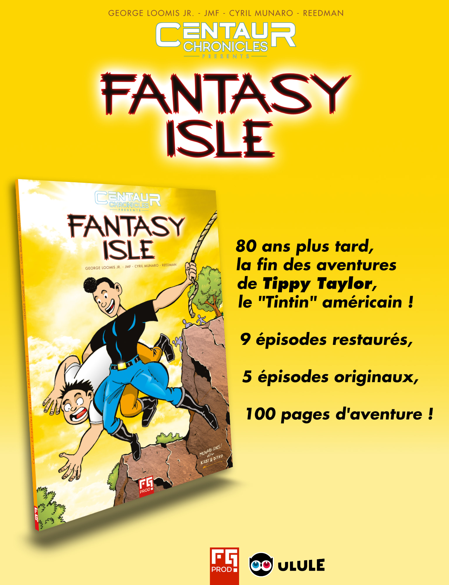 Tippy Taylor on Fantasy Isle est un album idéal, aussi bien pour les fans de comics américains qui veulent poursuivre leur exploration de l’univers Centaur Chronicles que pour les amoureux de la bande-dessinée franco-belge de 7 à 77 ans qui veulent découvrir une œuvre inédite en français qui rend hommage à l’imaginaire des précurseurs de ce courant majeur de la culture européenne et américaine. L’album reprend les aventures originelles du « Tintin » américain (comme l’appellent les spécialistes) mais également les 30 pages inédites de Cyrille Munaro qui donnent une fin à ses aventures plus de 80 ans après leur interruption.
