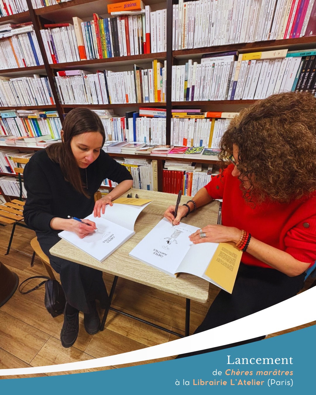 Retour en images sur le lancement de la BD « Chères marâtres » de @solennbardet et @marion.chancerel à l’@atelier_librairie hier soir ! Une rencontre passionnante, marquée par des échanges riches et l’enthousiasme des deux autrices de cet album original et percutant sur celles qui ont bien souvent le mauvais rôle.