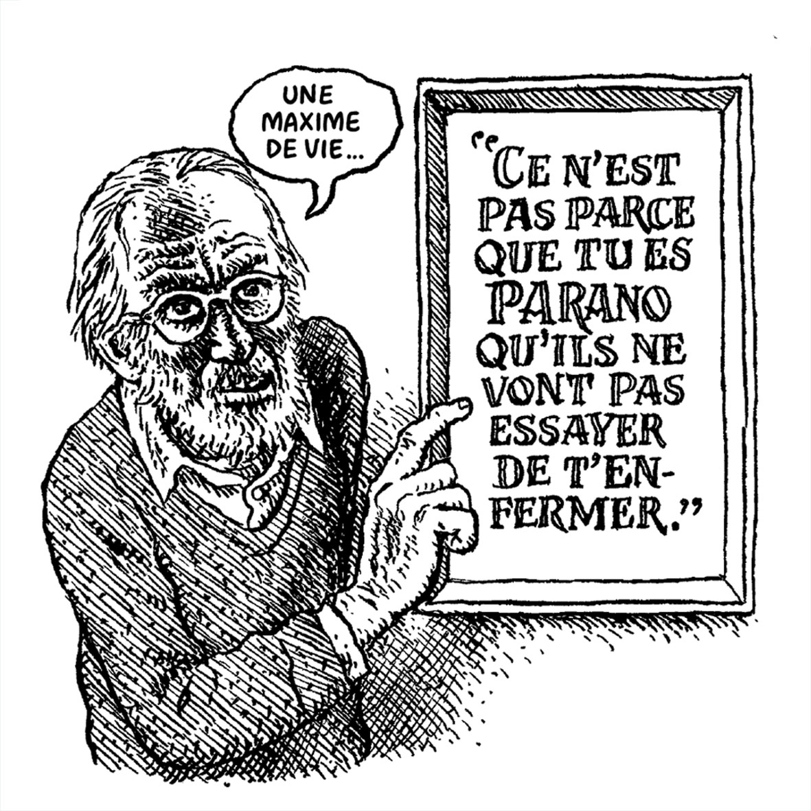 Dans ce livre inédit, le dessinateur de 82 ans sort de sa retraite et plonge dans les terriers de lapin d’Internet et de la presse écrite pour interroger la frontière ténue entre esprit critique et théories du complot.