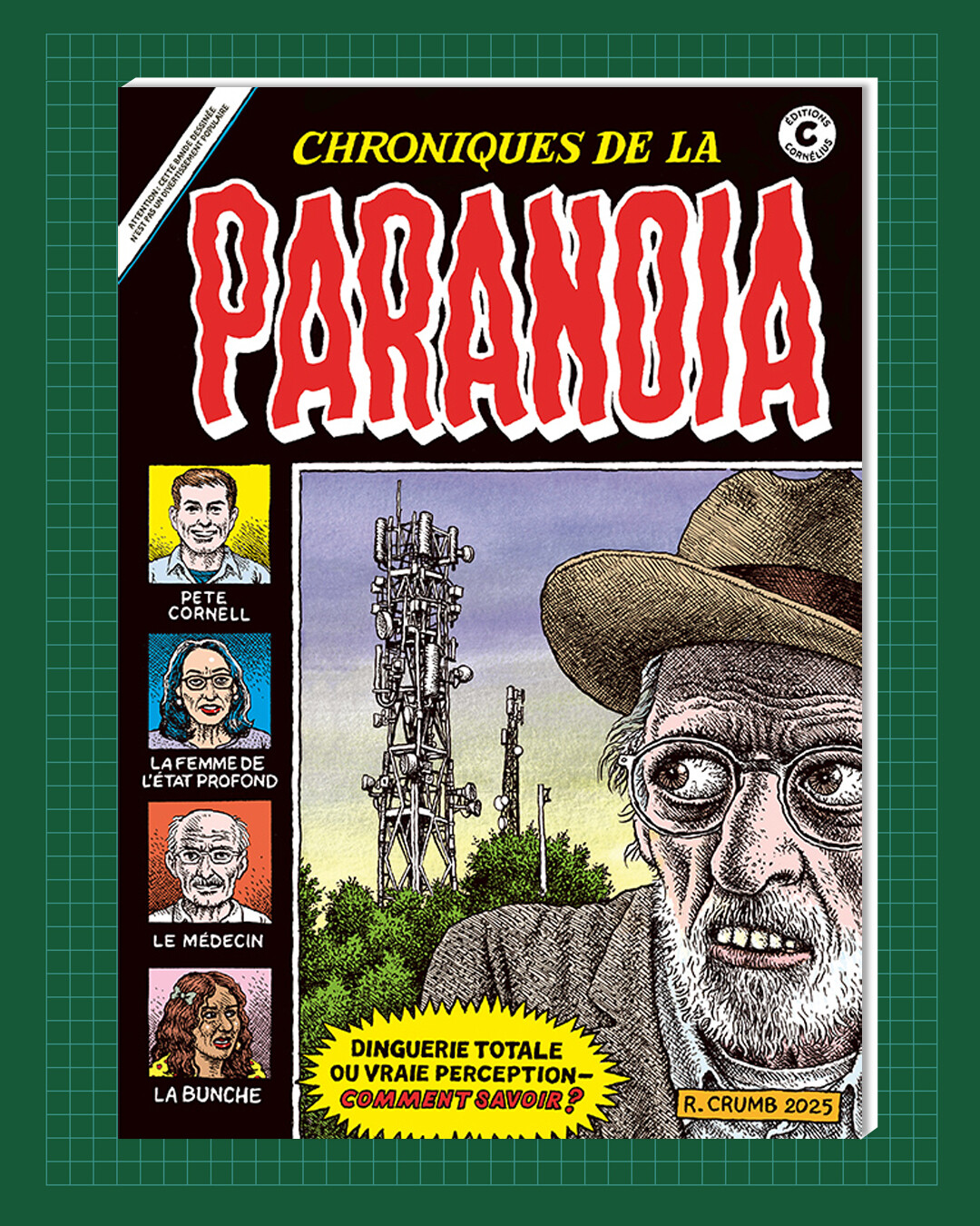Pour bien terminer l’année, on vous dévoile la couverture de notre prochaine parution, qui sortira fin janvier : « Chroniques de la paranoïa » de Robert Crumb !